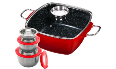 - Bräter »4L« Set, 3 Schüsseln mit Deckeln: Ø17.5 Ø14.5 Ø12cm, 24x24cm Aluguss-Bräter, 8...KINGUrsprünglicher PreisUVP 69,99 €Rabatt- 41 %Aktueller Preis40,79 €