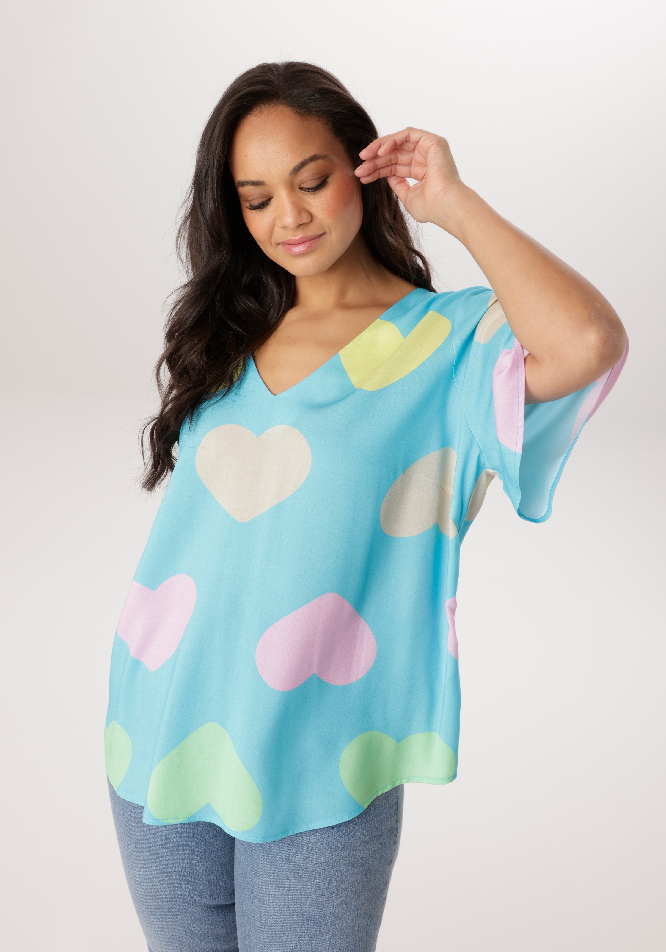 - Schlupfbluse mit farbigen Herzen bedruckt- jedes Teil ein Unikat - NEUE KOLLEKTIONAniston PLUSUrsprünglicher PreisUVP 39,99 €Rabatt- 7 %Aktueller Preisab 36,99 €Grundpreis36,99 €pro1 Stk