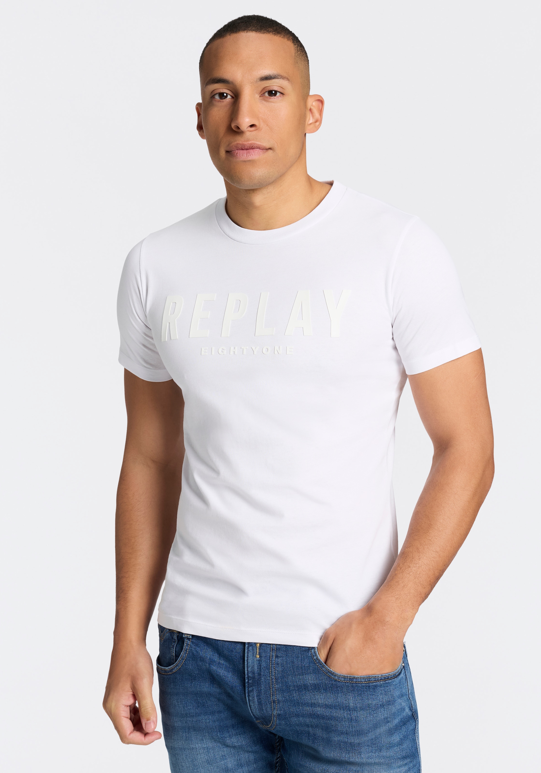 - T-Shirt Kontrastfarbener Replay- DruckReplayUrsprünglicher PreisUVP 39,00 €Rabatt- 54 %Aktueller Preisab 17,79 €