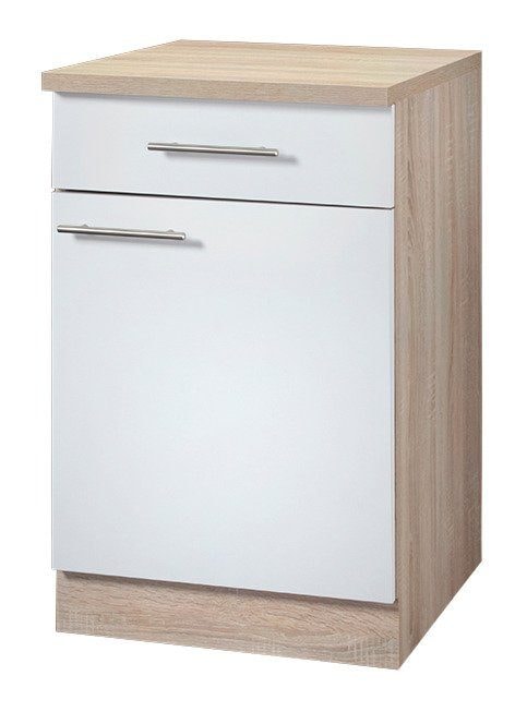 Farbbezeichnung | Front: Weiß matt, Korpus und Arbeitsplatte: Sonoma eichefarben |