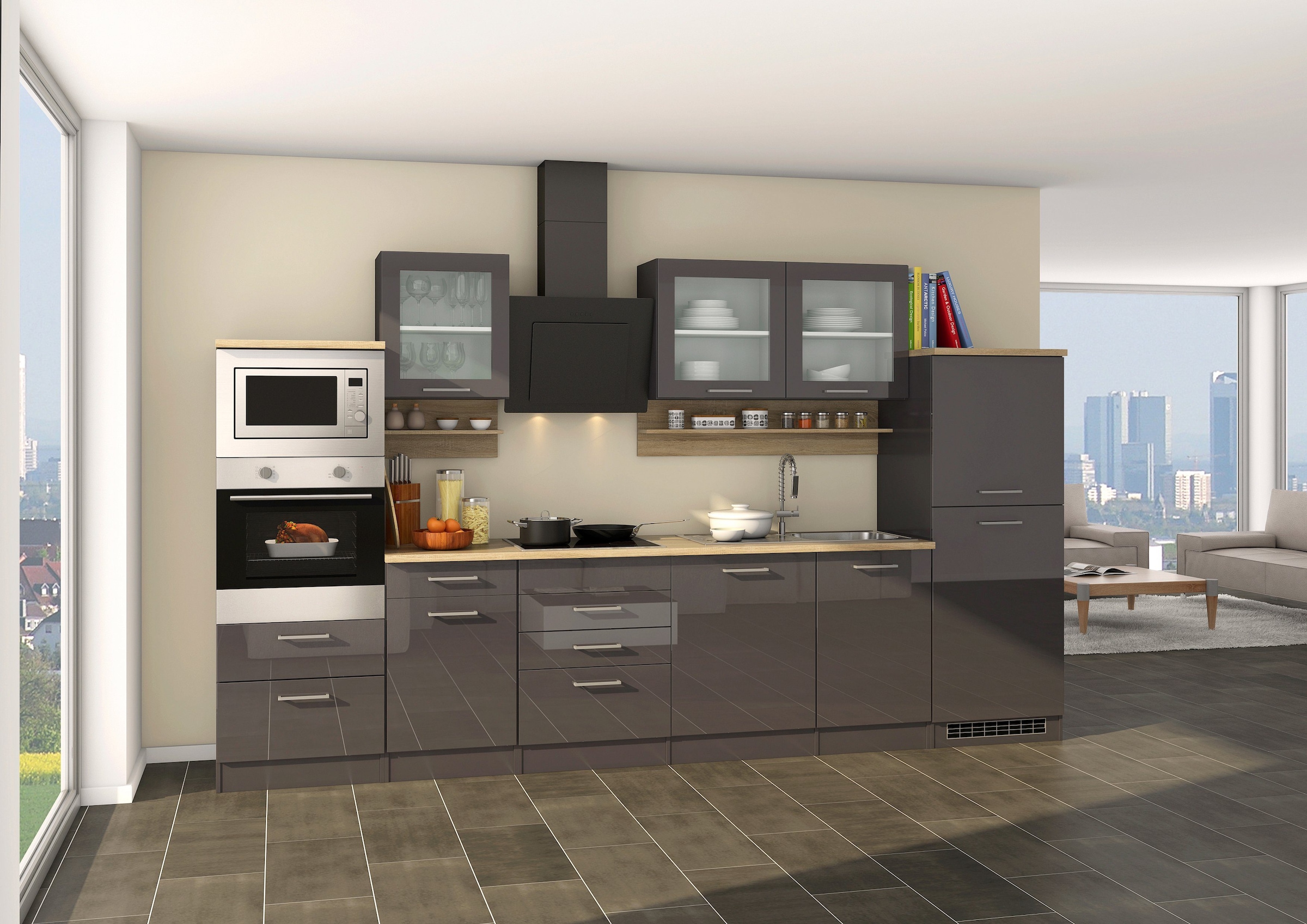 KOCHSTATION Küchenzeile »KS-Mailand« mit Elektrogeräten, Breite 340 cm