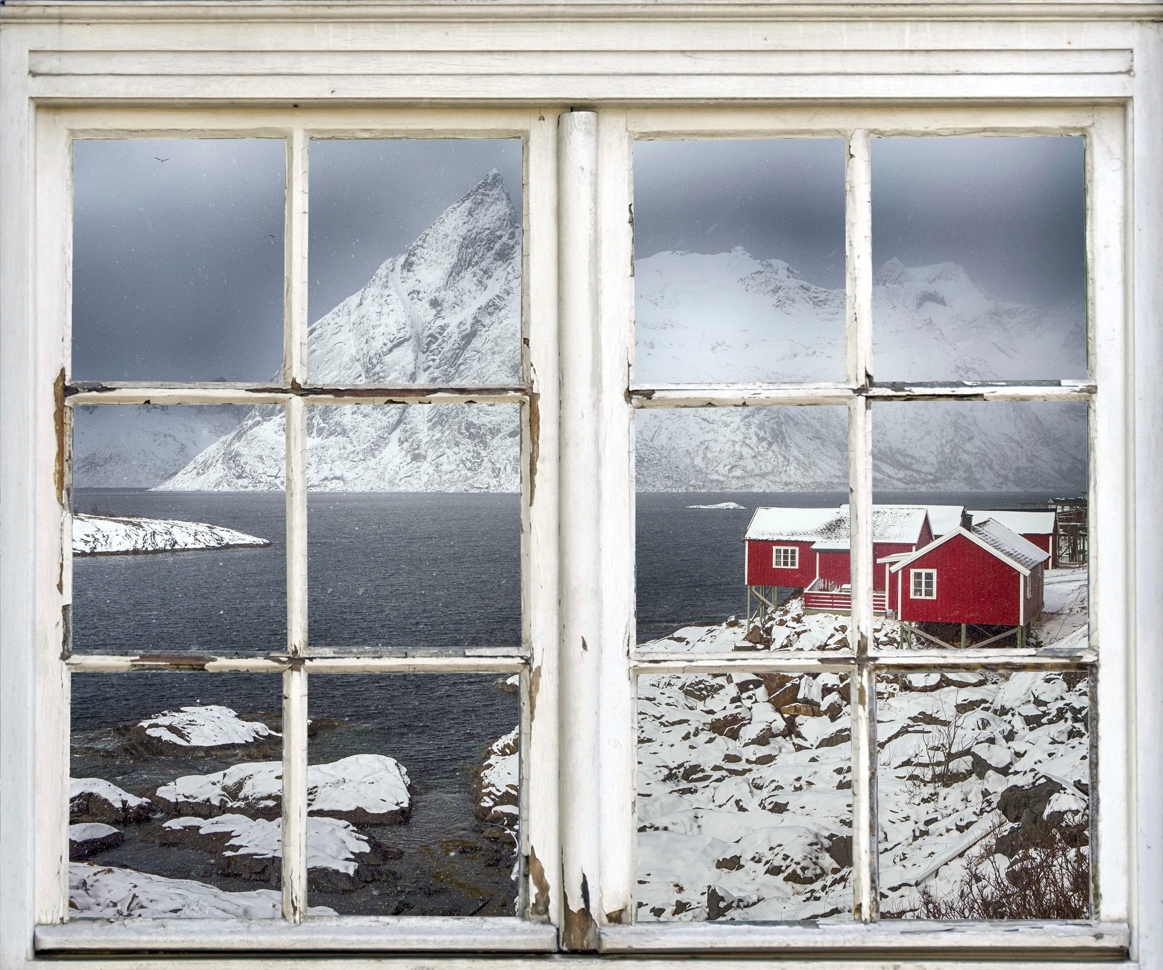 queence Wandsticker »Haus im Schnee« Wandsticker, Wandbild, selbstklebend, 3D, Fenster