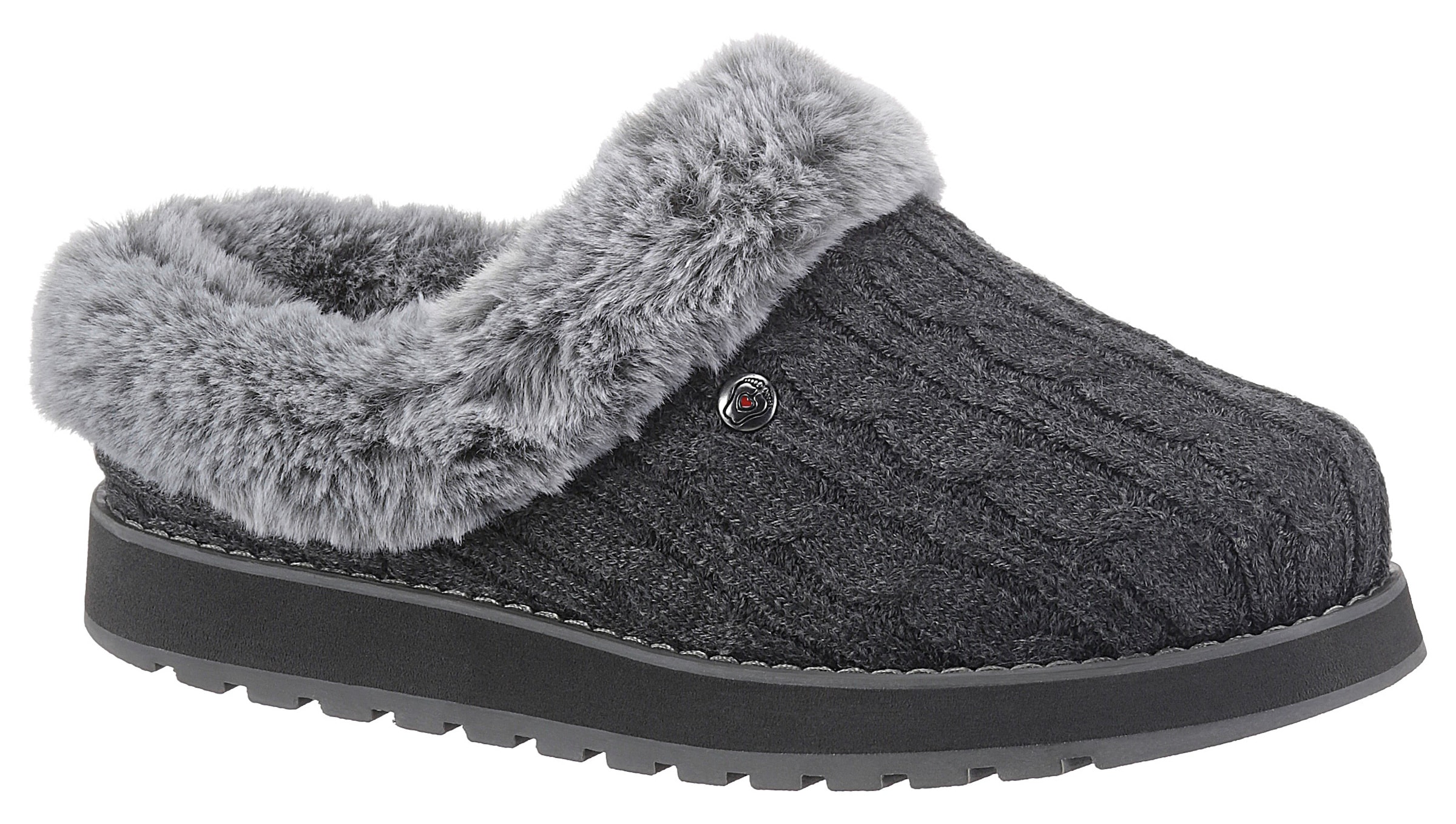 Pantoffel, Skechers, aus Textil mit Fellimitat