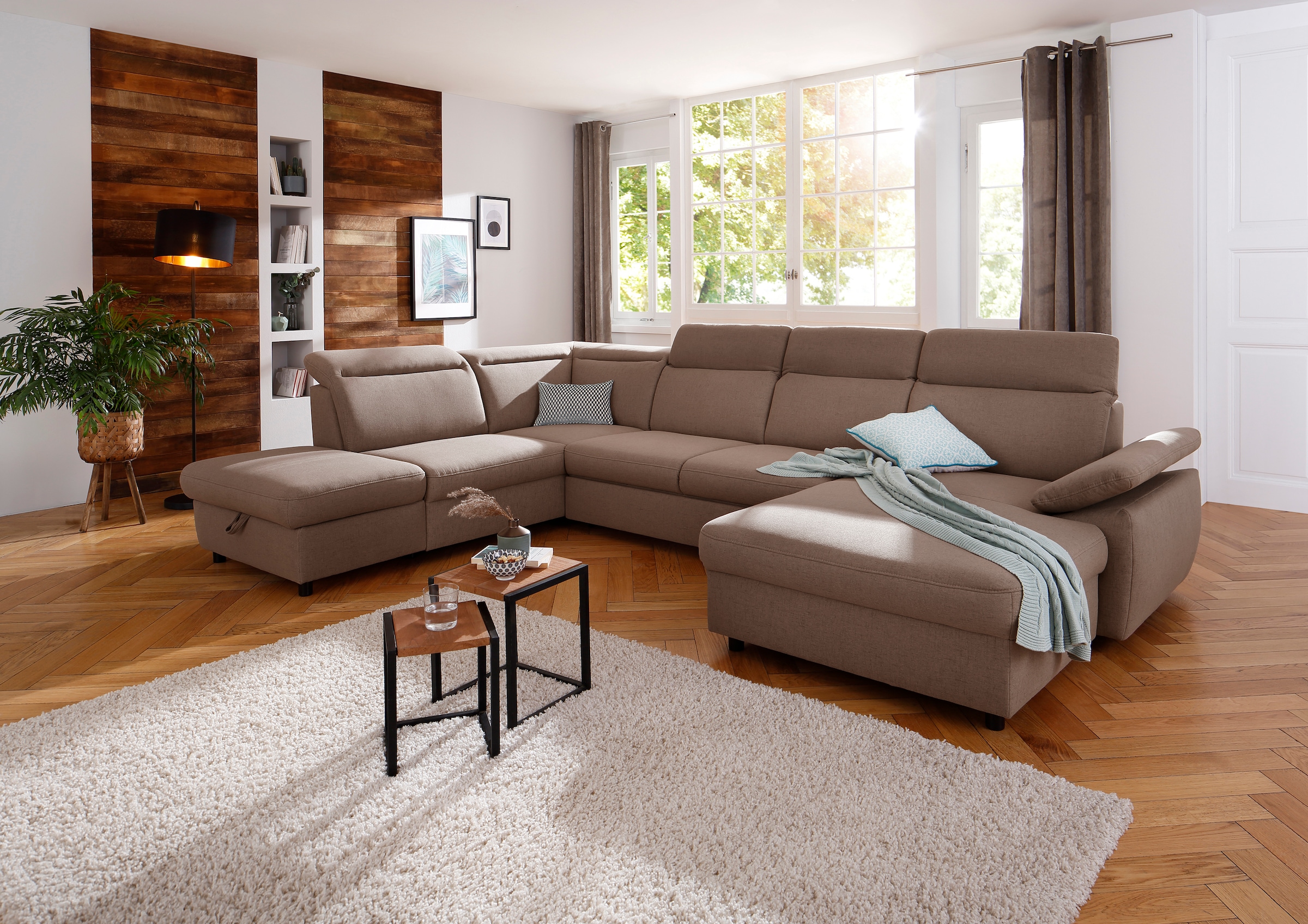 Home affaire Wohnlandschaft »Mauritius U-Form« mit Kopfteil- und Armlehnverstellung, wahlweise mit Bettfunktion