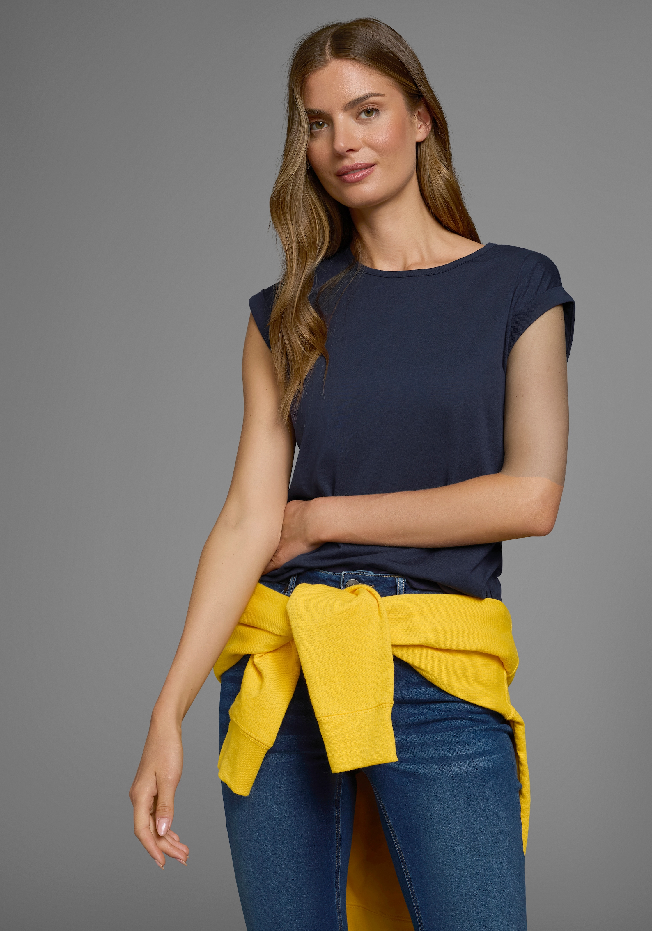 Gut kombinierbares Damen-3/4-Arm-Shirt von Laura Scott. Mit einem hüftbedeckenden und sehr eng anliegenden Schnitt. Kombinierbar für coole und legere Freizeit-Outfits. Das Oberteil aus dehnbarem und weichem Single Jersey sorgt für hohen Tragekomfort.