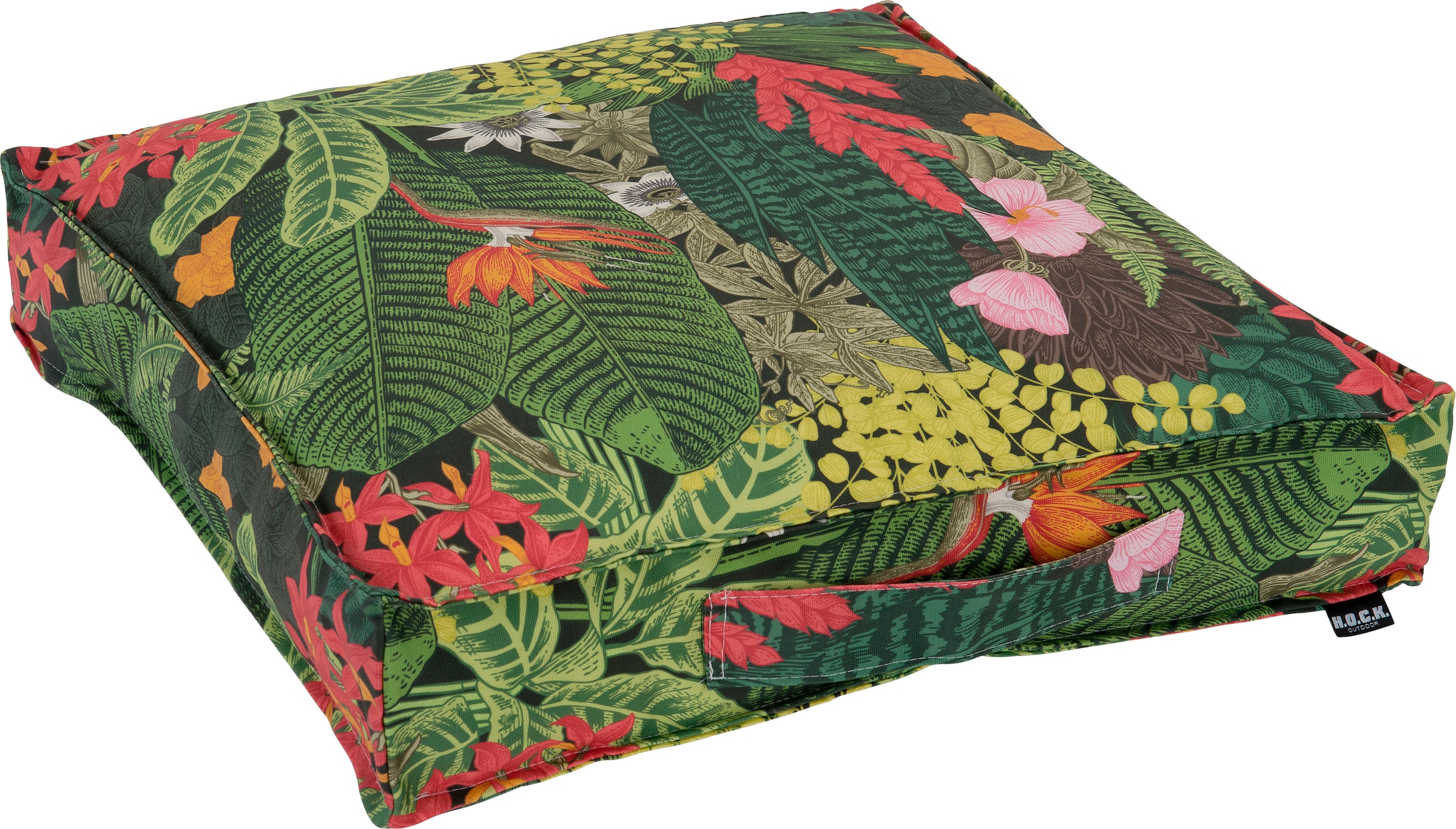 Das Matratzenkissen "Forever Green" der Marke H.O.C.K besticht durch das tolle Dschungelmotiv und besteht aus einer pflegeleichten 100% Polyacryl (dralon®) Qualität. Mit Fleckschutz ausgerüstet ist der Bezug zusätzlich wasserabweisend, lichtecht, schimmelresistent und erfüllt den STANDARD 100 by OEKO-TEX®.