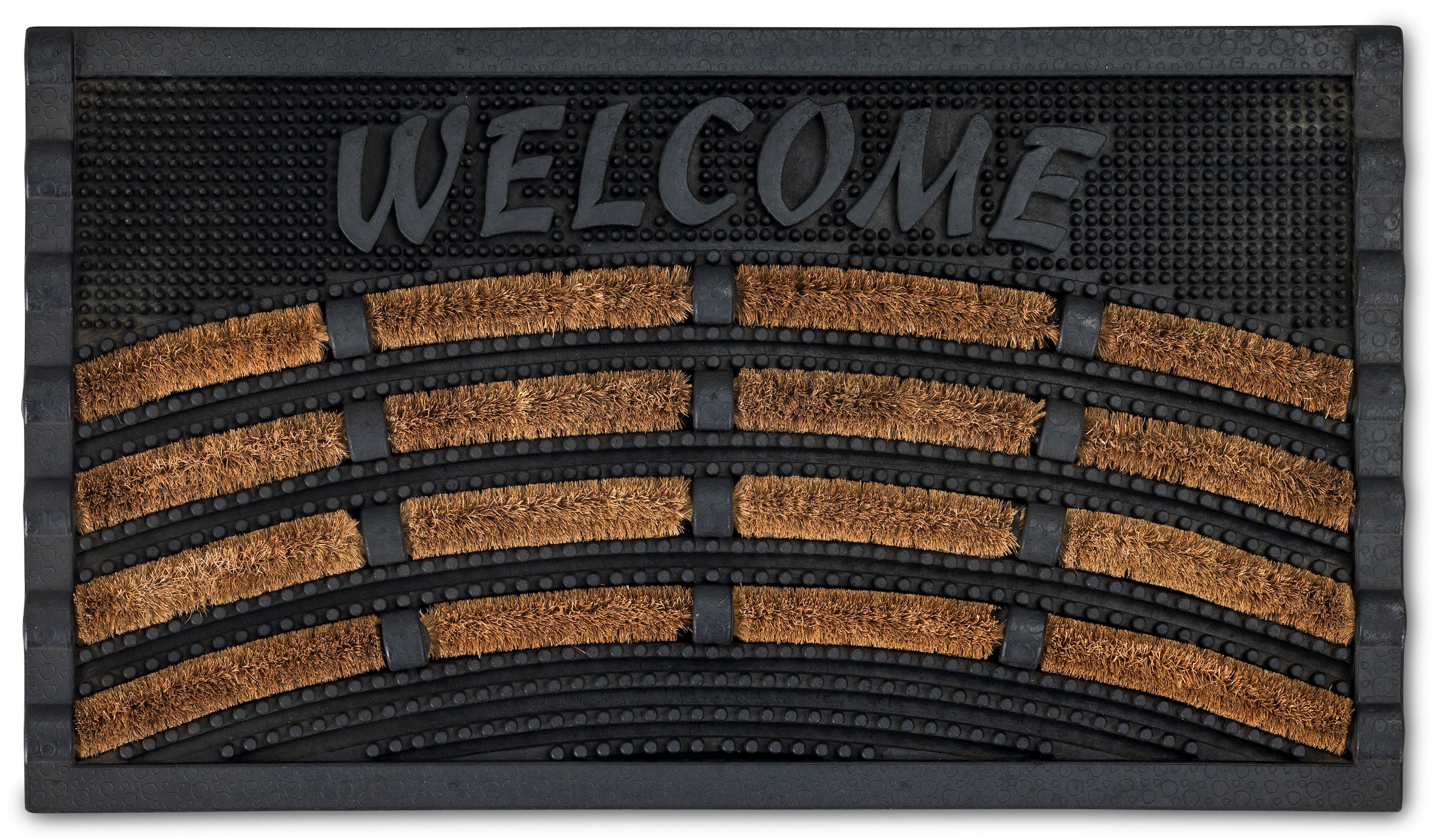 Das Besondere an unserer Rimini ist ihr Materialmix aus Gummi und Kokos. Die Gumminoppen streifen den groben Schmutz ab, während die Kokosborsten gleichzeitig auch den feinen Schmutz aufnehmen. Der Fußabstreifer ist rutschfest und hält jeder Witterung stand.
