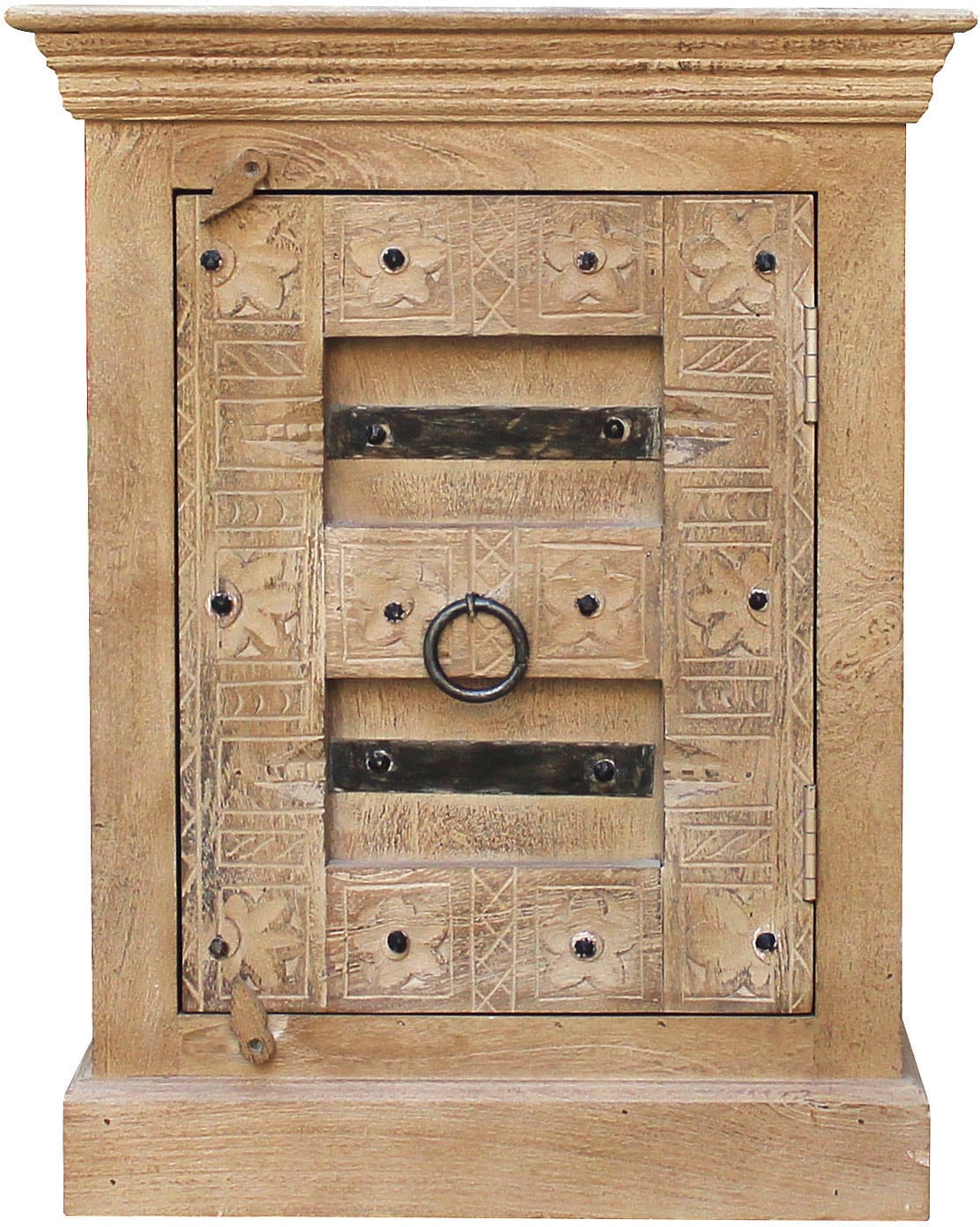 OTTO home Nachtkommode »Bonstetten« pflegeleichtes Mangoholz, mit dekorativen Schnitzereien, Breite 50 cm