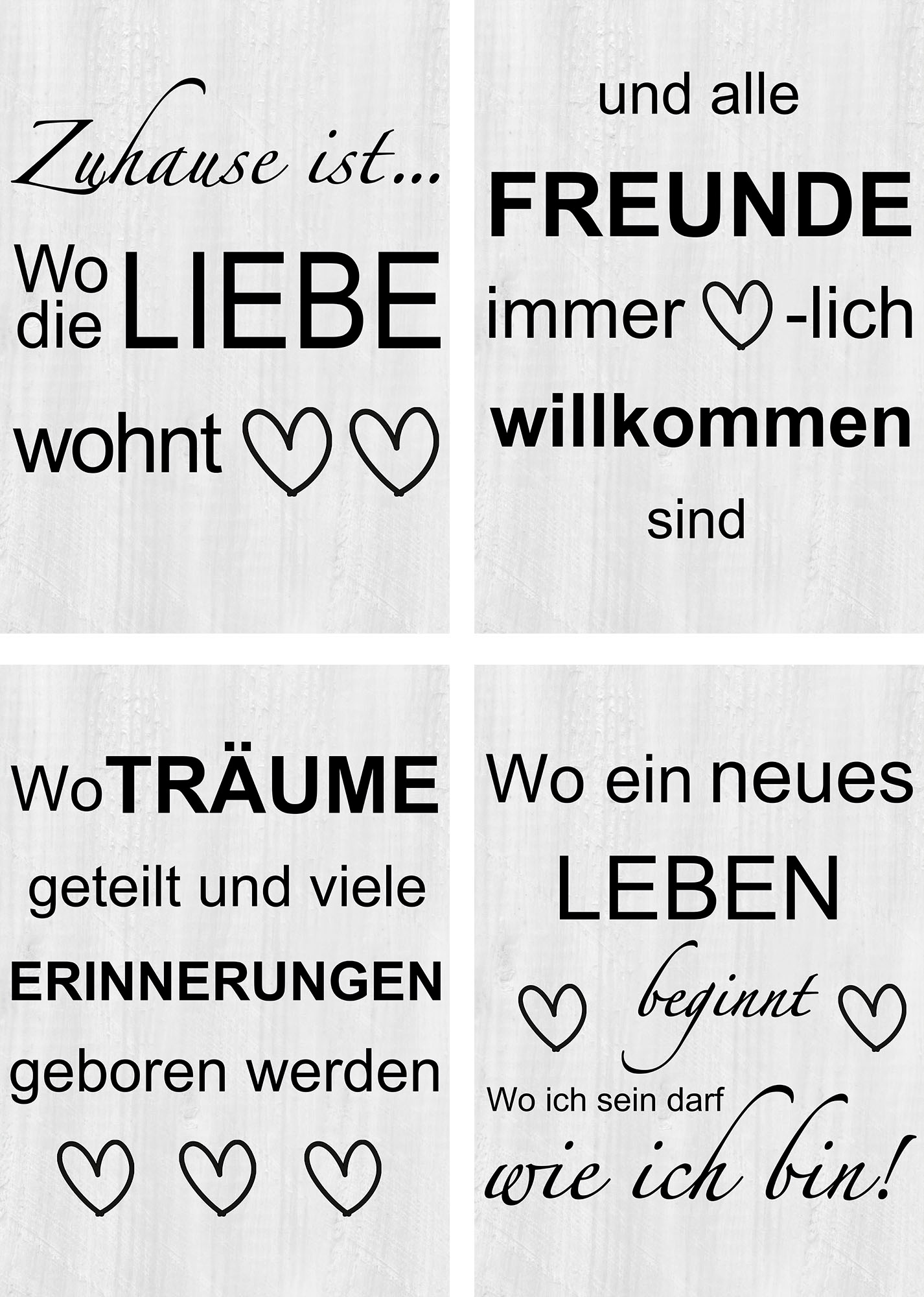 Artland Poster »Wo die Liebe wohnt 1-4« Sprüche & Texte 4 Stk. tlg. Poster, Wandbild, Bild, Wandposter