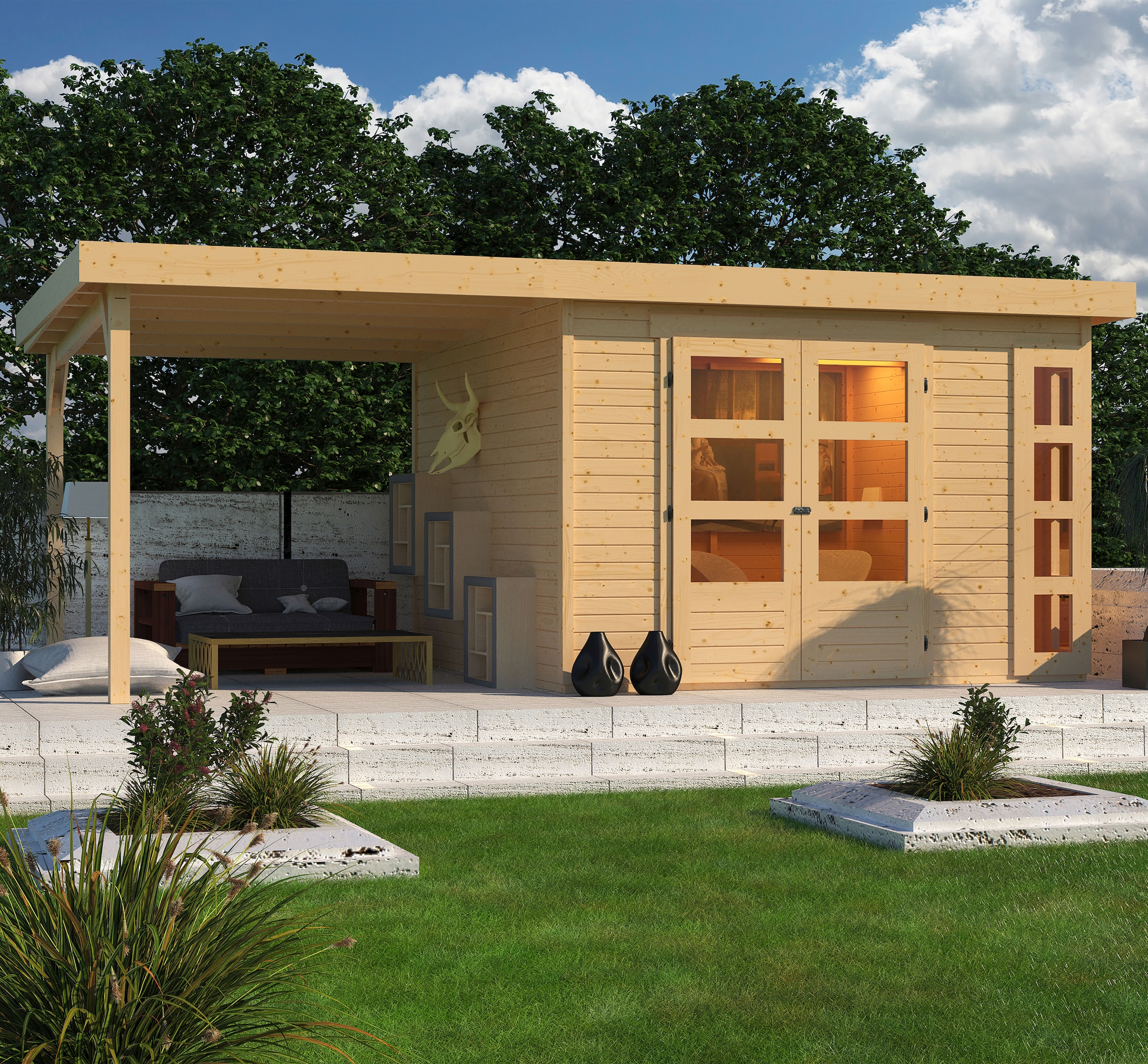 - Gartenhaus aus hochwertiger nordischer Fichte mit wasserabweisender Profilierung