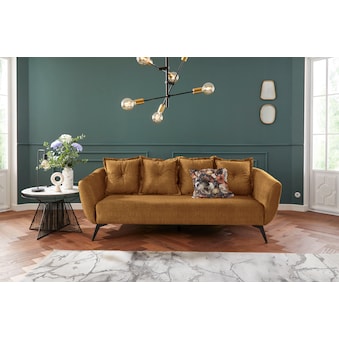 Home affaire 2,5-Sitzer »Baggio, Breite 196 cm, modern romantisches Design« Zierkissen inklusive, Komfortsitzhöhe 45 cm, schwarze Metallfüße
