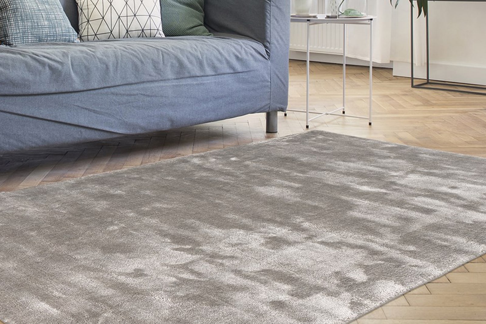 Die handgewobenen Strukturen erlangt der Teppich aus Herstellung in Indien. Die Oberfläche besteht hierbei aus Bambus gewonnener Seide. Der Material-Mix auf der Rückseite bewirkt eine optimale Eignung für Fußbodenheizungen. Darüber hinaus ist er rutschfest, einfach in der Pflege und widerstandsfähig.