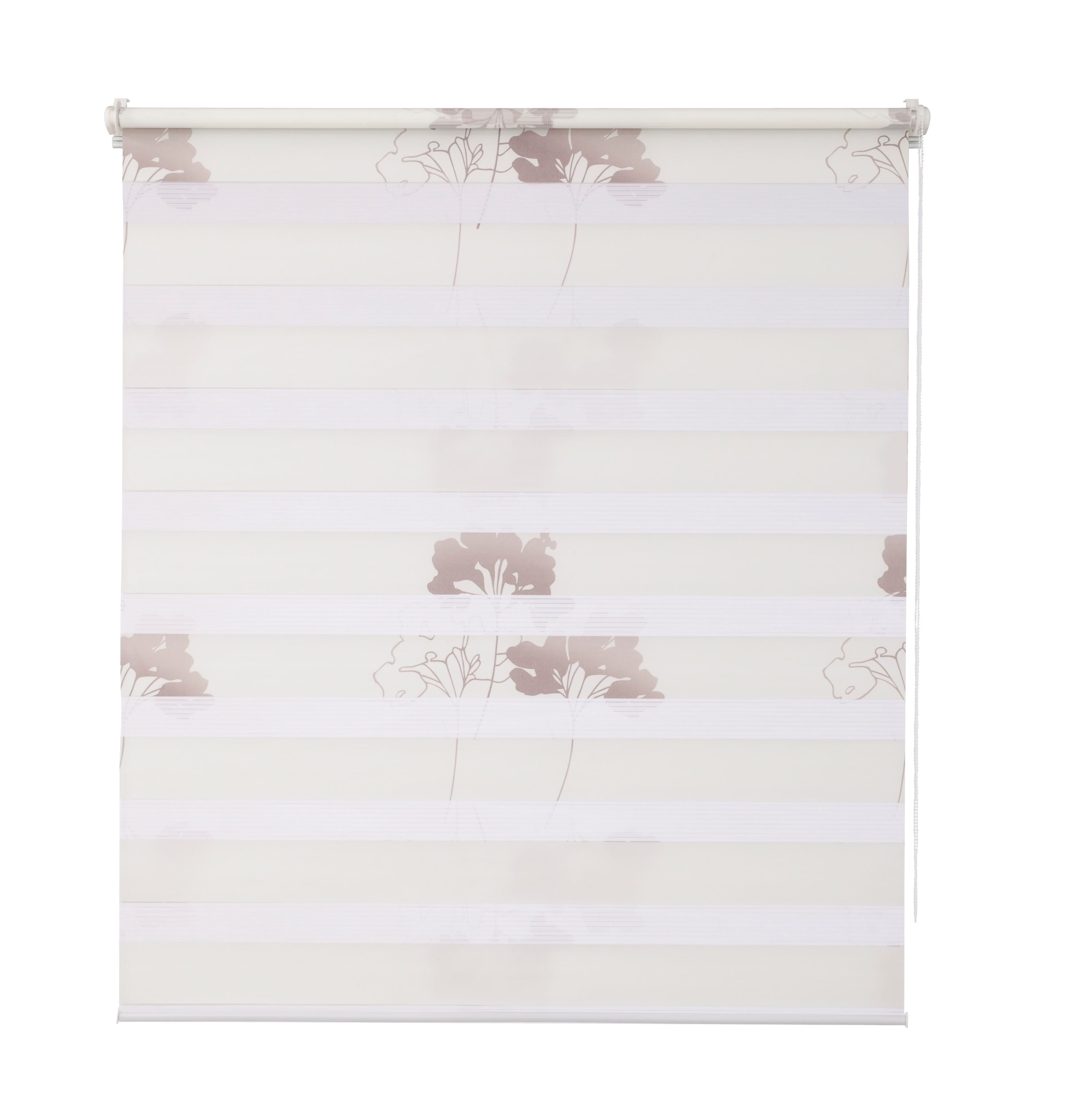 Doppelrollo »Delphi« mit modernem Blumendesign im Festmaß. Superleichte Montage am Fensterflügel ohne Bohren oder Schrauben. Die Technik lässt sich variabel in jeder Höheneinstellung über den Kettenzug steuern. Das Kettenzuggetriebe kann je nach Wunsch rechts oder links montiert werden. Durch den mitgelieferten Schnurhalter, wird das Pendeln der Kette verhindert .Lässt man das Doppelrollo vor dem Fenster runter, so läuft es in zwei parallel verlaufenden Stoffbahnen aneinnader vorbei. So lassen sich verschiedene Transparenzen von Durchsicht, leichter Transparenz bis hin zu Sicht- und Lichtschutz stufenlos regulieren. Auf diese Weise schaffen Sie sich gleichzeitig einen dekorativen Blickfang an Ihrem Fenster sowie einen Schutz vor neugierigen Blicken. Inkl. Montageanleitung und Zubehör.