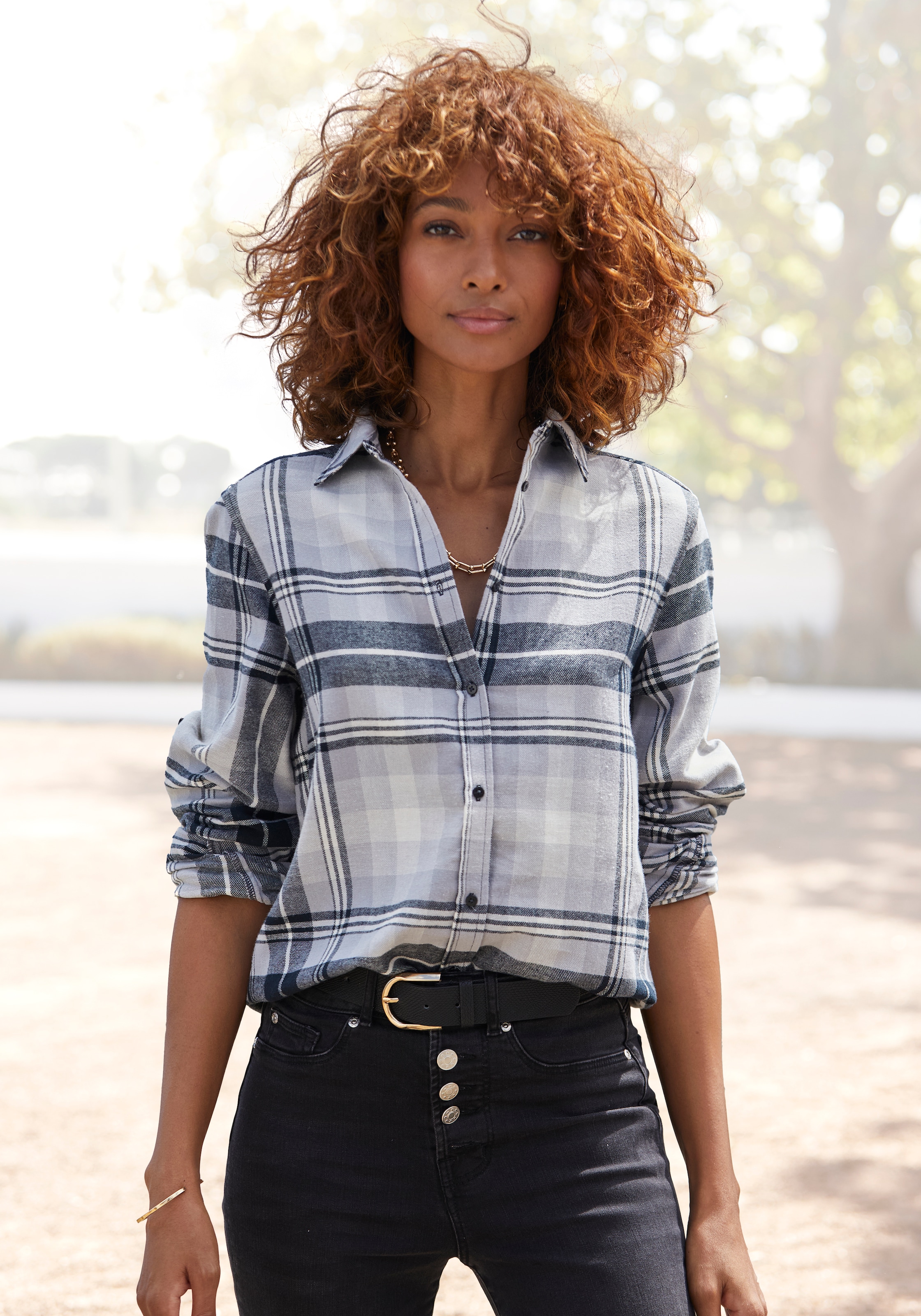 Buffalo Hemdbluse aus weichem Flanell mit Blusenkragen, Flanellhemd, Karobluse