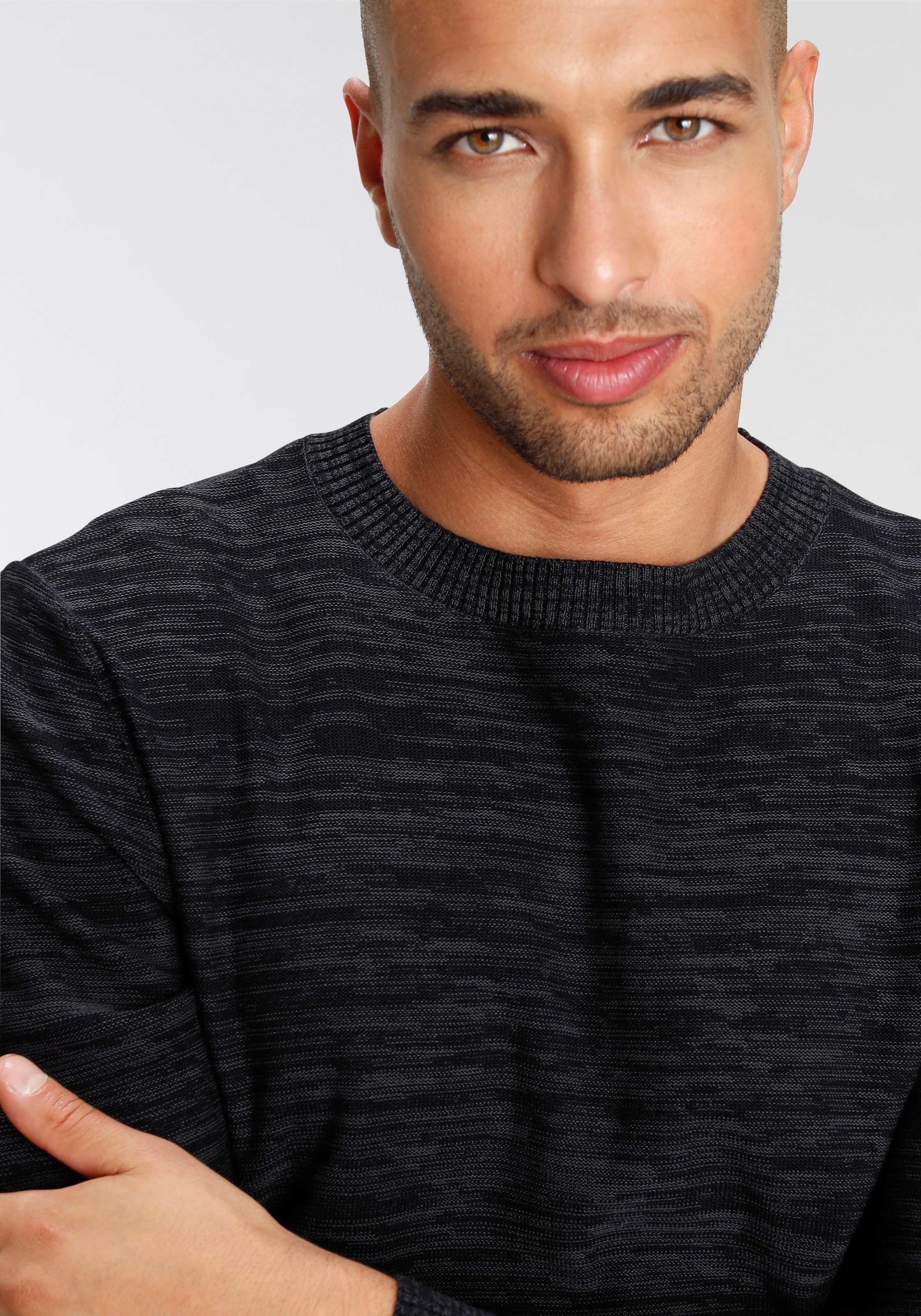 AJC Rundhalspullover in melierter Optik