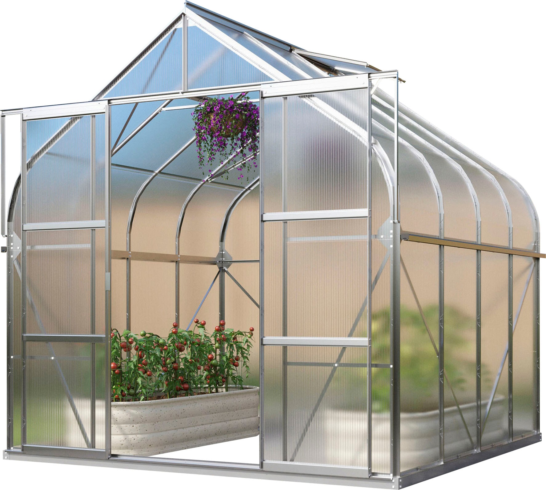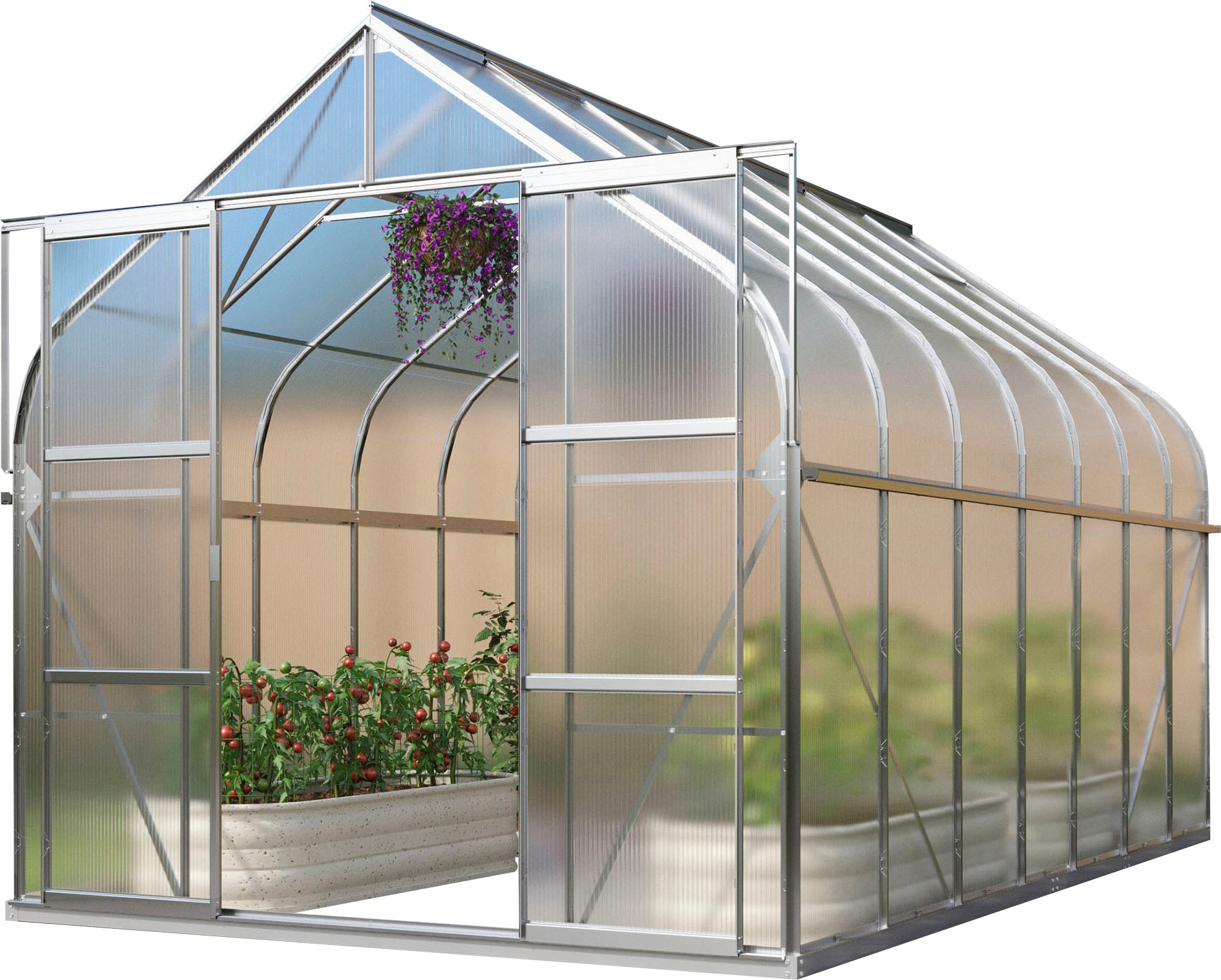 - Gewächshausbausatz aus eloxierten Aluminiumprofilen, inkl. lackiertem und verzinktem Stahlfundamentrahmen