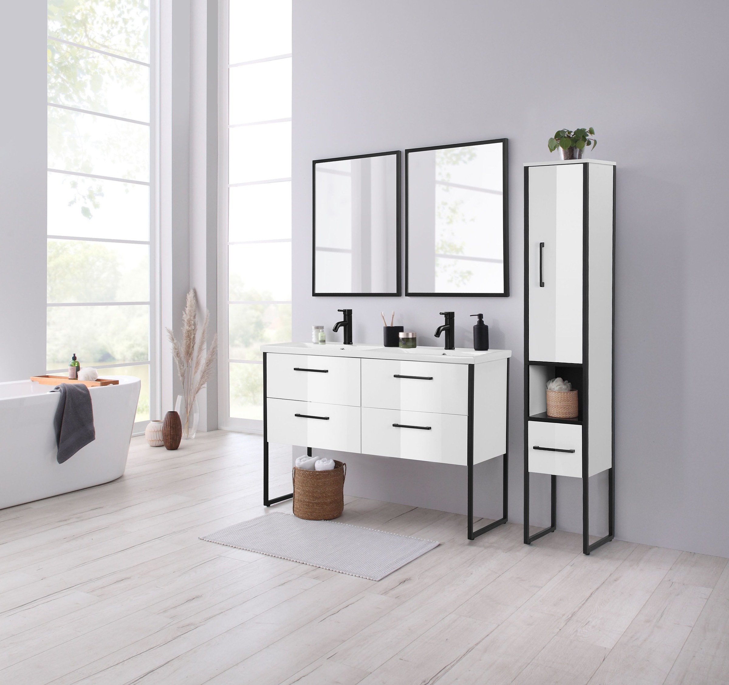 welltime Seitenschrank »Paris« premium Badmöbel , Breite 31,5 cm Hochschrank Loft Design