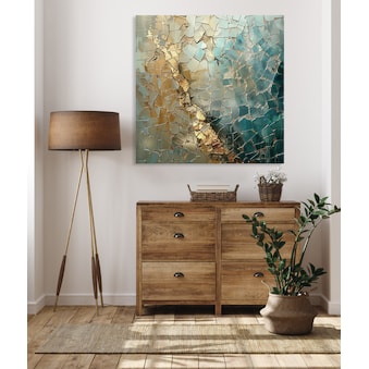 Dank ihrer glatten und glänzenden Oberfläche sowie der bereits integrierten Wandhalterung (im Lieferumfang enthalten) auf der Rückseite, verleihen Acrylglasbilder mit Blattgold deinem Wohnraum einen attraktiven Blickfang mit schwebender Tiefenwirkung, dank der rahmenlosen Befestigung. Gleichzeitig dient der rückseitig installierte Rahmen der Stabilisierung des Bildes und sorgt für einen gleichmäßigen, parallelen Abstand zur Wand.