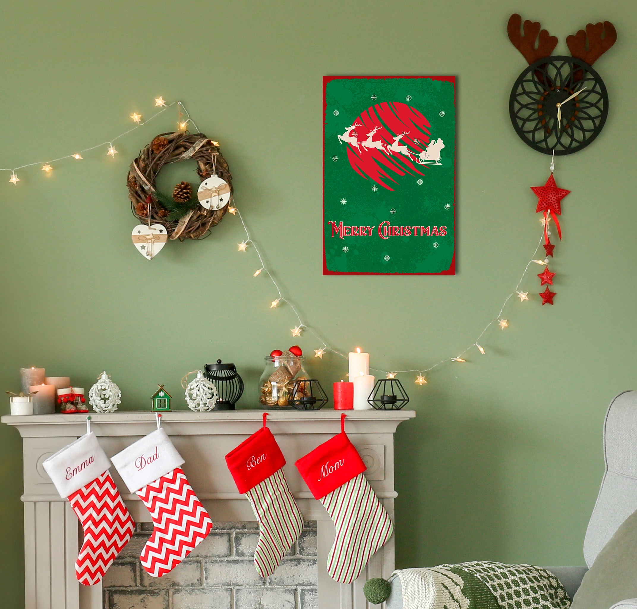 queence Metallbild »Merry Christmas Snow Globe« Schriftzug | Schriftzüge | Weihnachten | Weihnachtsbaum 1 Stk. tlg. Stahlschilder