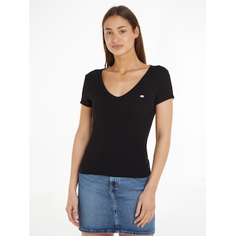 Klassisches Damen-Langarmshirt von Tommy Jeans mit Logo. Mit einem hüftlangen und anschmiegsamen Schnitt. . Durch die hohe Dehnbarkeit des Ripp-Materials ist das Oberteil besonders bequem.