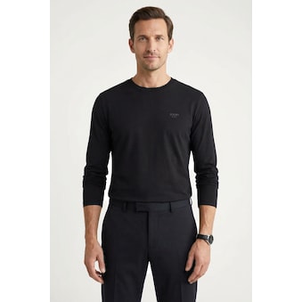 Kombistarker Herren-Longsleeve von Tommy Hilfiger Big & Tall. Mit einem anliegenden Schnitt. Die Ärmel sind lang. Das Oberteil aus dehnbarem und weichem Single Jersey sorgt für hohen Tragekomfort.