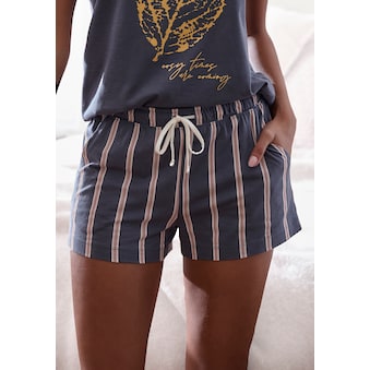 Pyjamahose von Lascana mit Alloverprint. Elastischer Tunnelzugbund mit Bindeband. Seitliche Eingrifftaschen. Schmale Passform. Trageangenehmer Baumwoll-Viskose-Jersey.