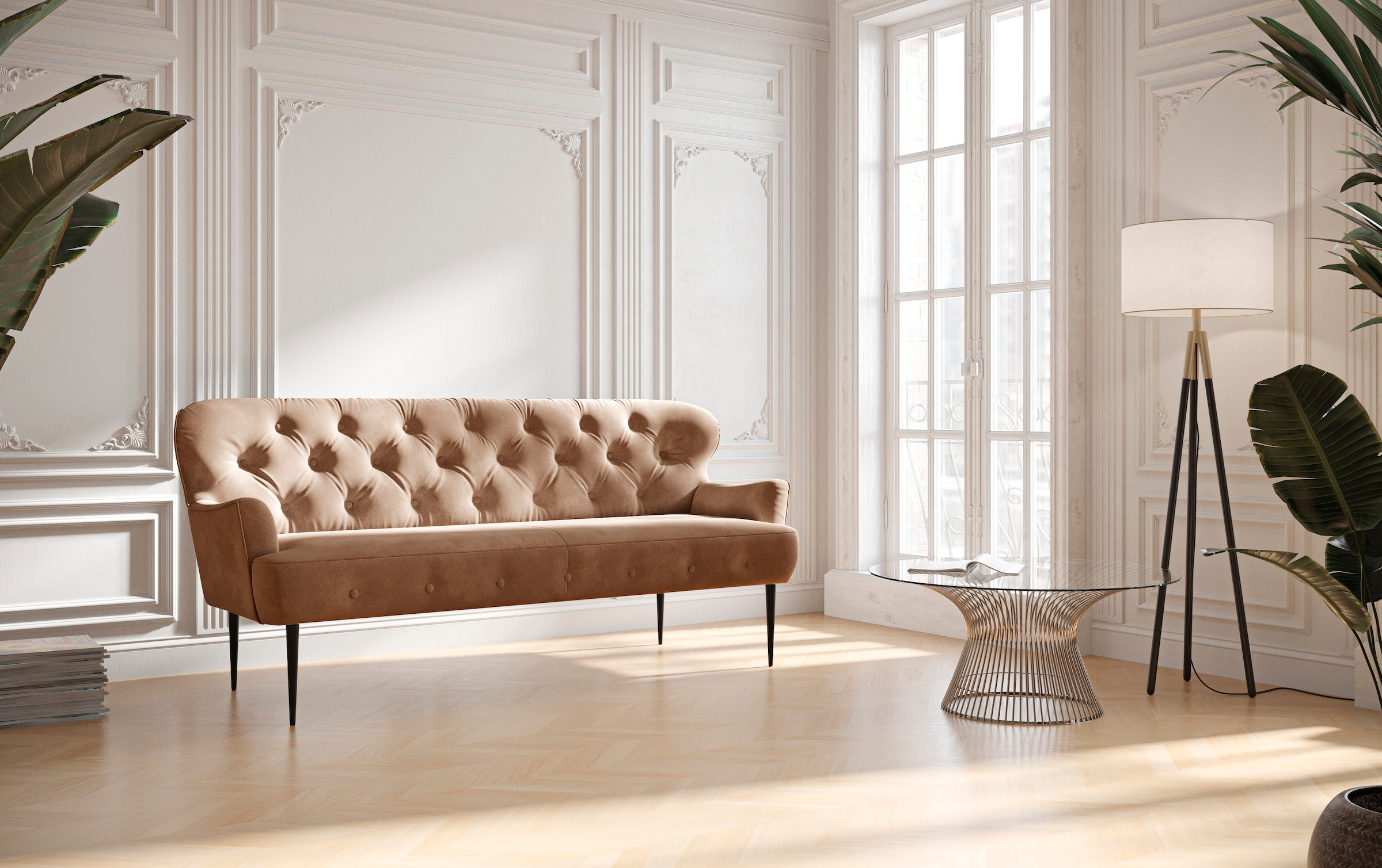 PLACES OF STYLE 3-Sitzer »Amber« mit Knopfheftung,in verschieden Stoffarten