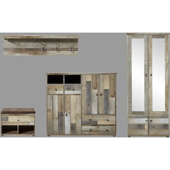 - Set besteht aus 1 Stauraumschrank, 1 Lowboard, 1 Kommode und 1 Wandregal