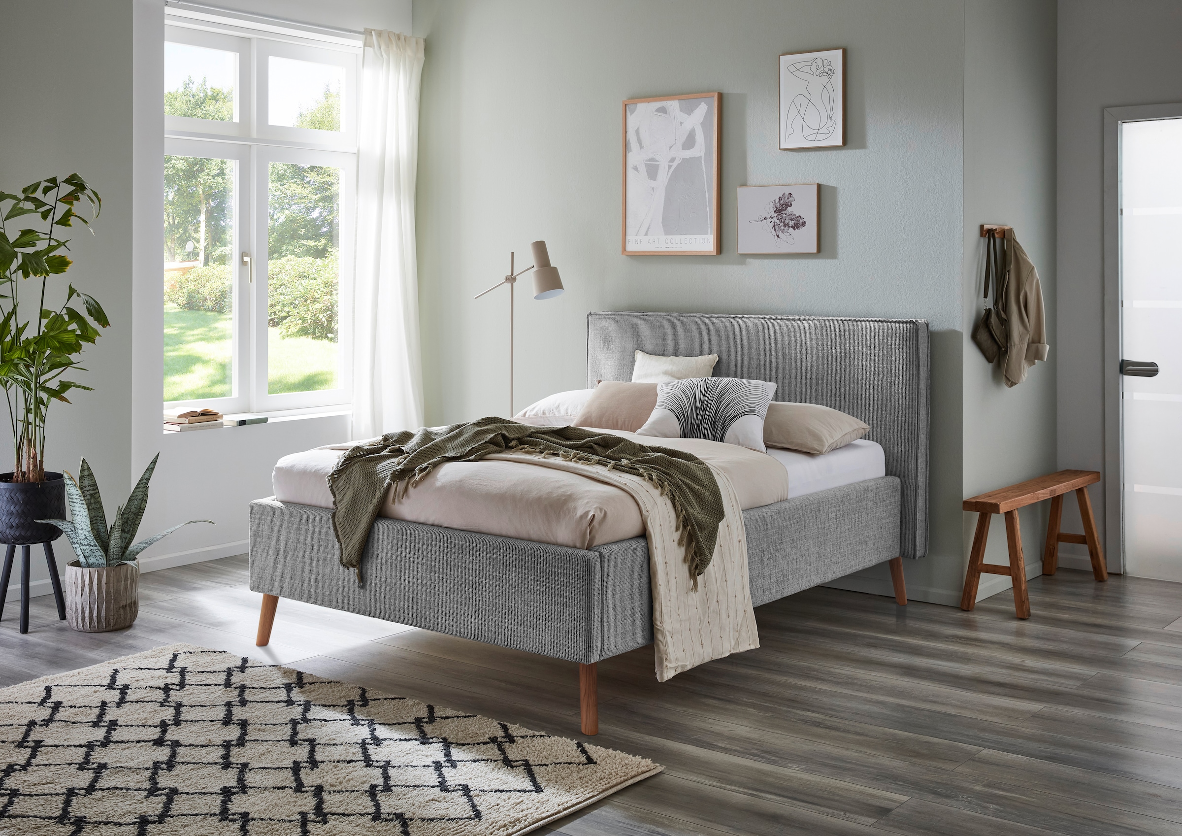 meise.möbel Polsterbett »Riva« mit eichefarbigen Holzfüßen, wahlweise mit Bettkasten und Lattenrost