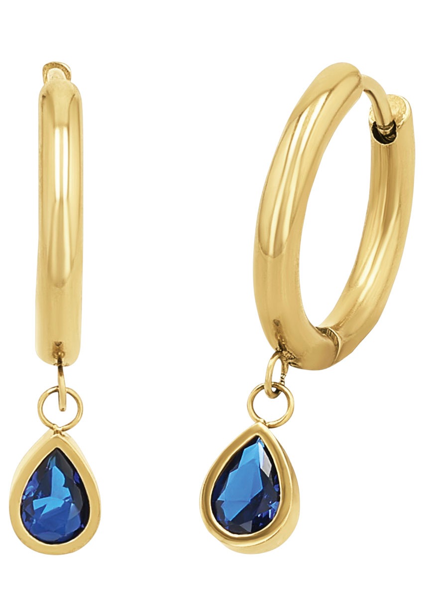 Vira Jewels Paar Creolen »Silber 925 rhodiniert mit 6 blauen Saphir-Steinen«
