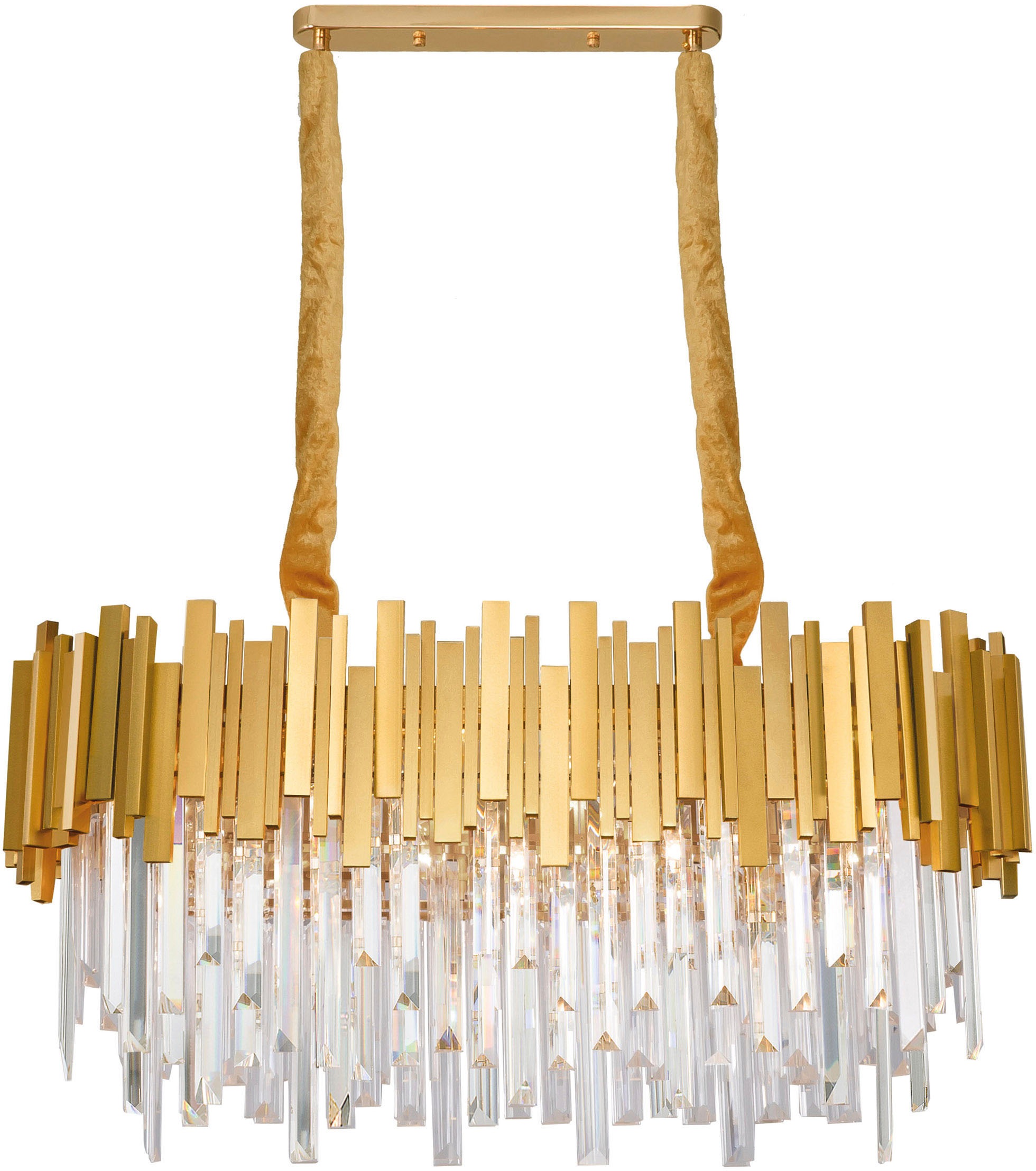 Die Grane Serie von Nova Luce bietet Einrichtungsliebhabern ein außergewöhnliches Design . Der Kronleuchter aus Kristall und Metall ist ein echter Hingucker und passt perfekt in Dein Esszimmer , Deinen Flur, Dein Schlaf- oder Wohnzimmer. Der Kronleuchter in Gold besteht aus hochwertigem Kristall und Metall, was ihm eine besondere Robustheit verleiht. Die auffällige Farbe sorgt für einen Blickfang in Deinem Raum und gibt ihm das gewisse Etwas. Mit den 8 Brennstellen bietet dieser Kronleuchter eine optimale Ausleuchtung Deines Raumes. Durch die geeignete Leuchtmittel lässt sich die Beleuchtung problemlos dimmen und passt sich somit Deinen Bedürfnissen an. Mit einer max. Leistung von 8 x 5 Watt ist er zudem äußerst energieeffizient. Zudem lässt er sich individuell auf die Größe Deines Raumes kürzen und passt sich somit perfekt Deinem Bedarf an. Ein Blickfang mit langer Lebensdauer - ein nachhaltiges Design von Nova Luce.