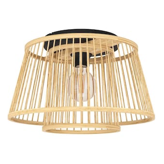 - Die Nachttischleuchte mit ihren zwei naturfarbenen, ineinander gesetzten Lampenschirmen aus Bambus-Streben sowie einem schwarzen Metall-Fuß fügt sich nahtlos in den Boho-Trend ein
