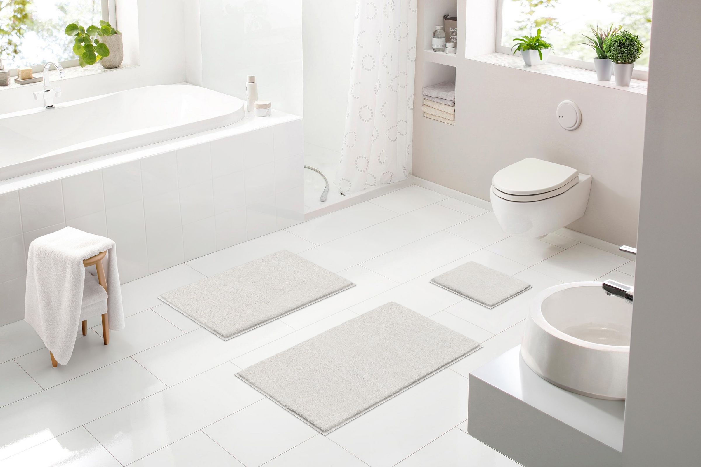 Die Badematte »AYLA« aus 100% Polyester ist unglaublich weich. Die Pflege ist so unkompliziert wie ihr Design. Bei Bedarf wird sie bei bis zu 40° in der Maschine gewaschen. Den Gang in den Trockner macht sie ebenfalls mühelos mit. Sie ist ringsum eingefasst und besitzt damit lang anhaltende Formstabilität. Der Rücken ist rutschhemmend beschichtet und selbstverständlich ist die Badezimmermatte auf für beheizte Böden geeignet. Die Zertifizierung nach dem Öko-Tex® Standard 100. Made in Europe. 3 Jahre Garantie.