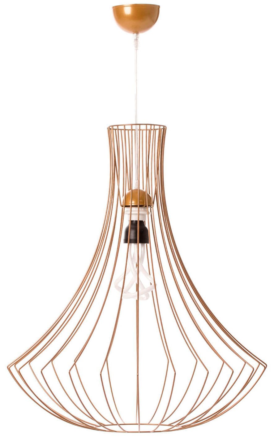 Mit dieser Deckenlampe können Sie in Ihrer Umgebung gekonnt Akzente setzen. Das minimalistisch gehaltene Design in industriellem Stil entsteht durch das drahtartige Gestell des Lampenschirms. Stilvoll in Form gebracht sorgen die gleichmäßigen Abstände zwischen den einzelnen Strängen für ein harmonisches Gesamtbild. Die ansonsten eher schlichte Lampe lässt sich problemlos in jeden Einrichtungsstil integrieren und sorgt bei eingeschaltetem Licht für wunderbare Lichteffekte, die durch den offenen Lampenschirm gestreut werden.