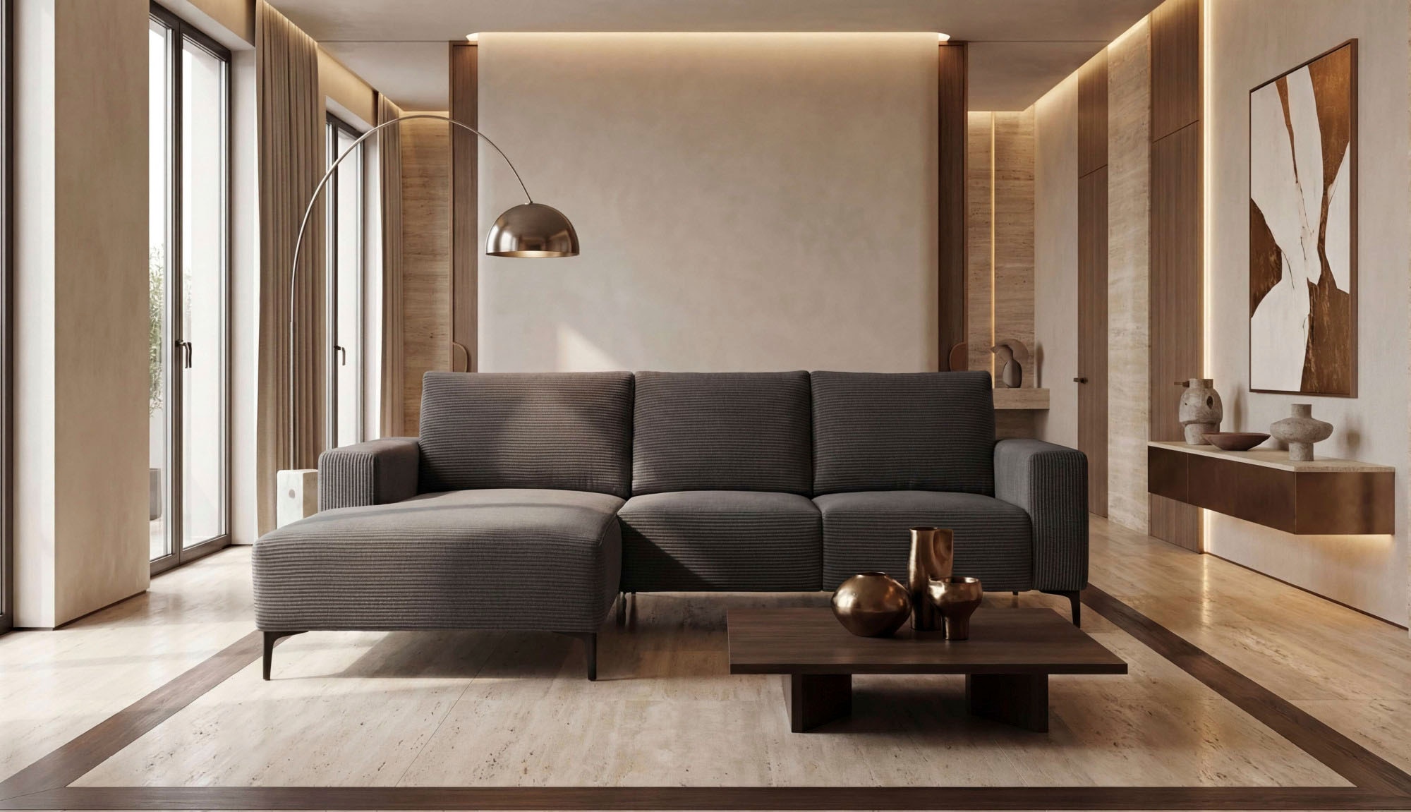- Design trifft Komfort. Modernes Sofa mit Ecken & Kanten und aktueller Kedernaht