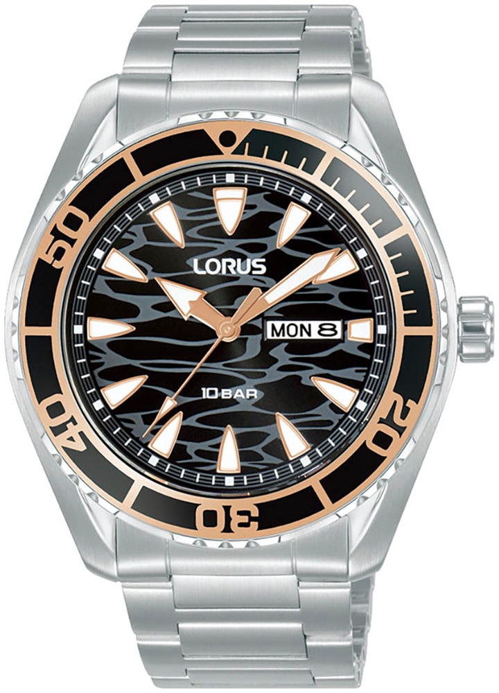 LORUS Quarzuhr »Sports« Armbanduhr, Herrenuhr, Edelstahlarmband, analog, Wochentag, Tag
