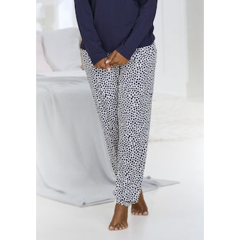 Charmanter Pyjama von Vivance Dreams. Hübscher Frontprint. Pyjamahose mit Schlitz am Saum und Gummizugbund mit Bindeband. Angenehme Baumwoll-Viskosequalität.