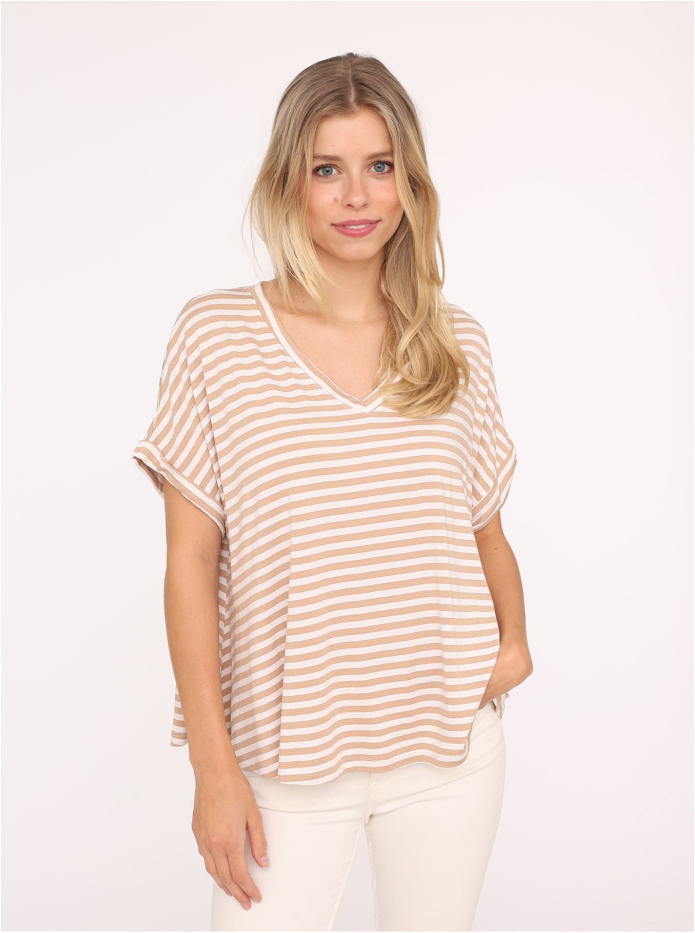 Besondere Merkmale | One Size, Kurzarm, V-Ausschnitt, gestreift, Loose Fit |