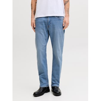 Unkomplizierte Herren-Regular-fit-Jeans von Jack & Jones. Mit gerade geschnittener Beinform und klassischer Leibhöhe. Versehen mit einem Markenlabel. Bietet viele Kombinationsmöglichkeiten von leger bis peppig. Der unempfindliche und robuste Jeansstoff macht die Hose pflegeleicht.