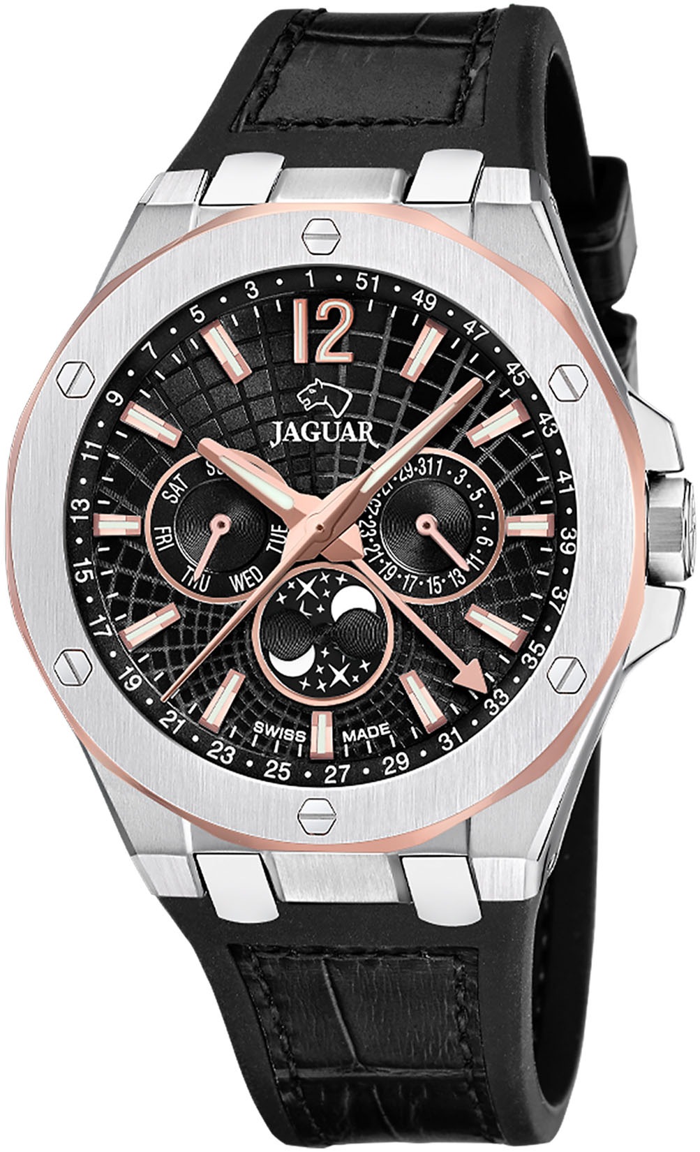 Jaguar Multifunktionsuhr »Diplomatic Moonphase« Quarzuhr, Armbanduhr, Herrenuhr, Swiss Made, Lederarmband,Mondphase