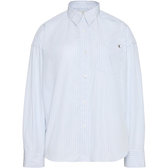 Gut kombinierbare Damen-Jeansbluse von Calvin Klein Jeans. Mit einem normalen Schnitt und Passe auf der Rückseite. Die Ärmel sind lang. Außerdem hat die Bluse eine Knopfleiste. Durch die hautfreundliche und dehnbare Baumwoll-Qualität ist das Oberteil angenehm zu tragen.