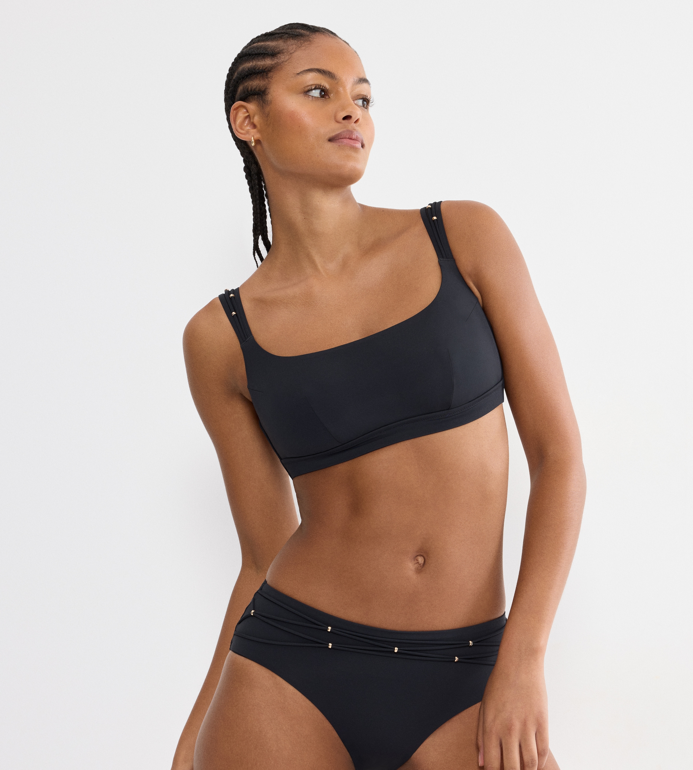 Dieser Tai Slip mit mittlerer Bedeckung und moderner, schmeichelnder Passform besticht durch dekorative seitliche Mesh-Einsätzen mit schimmernden goldfarbenen Perlen für einen einzigartigen Look. Der Tai Slip besteht aus 77% recyceltem, GRS-zertifiziertem Polyamid.