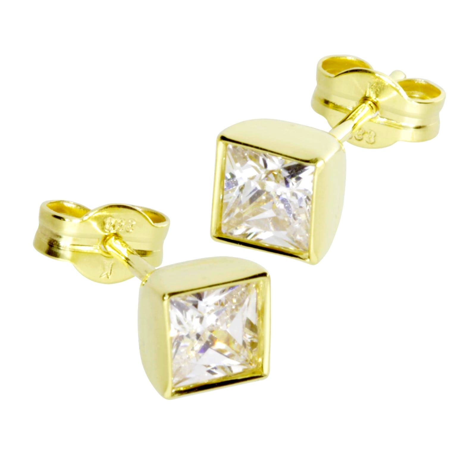 Kleine quadratische Ohrstecker aus Sterlingsilber 925/000 mit einem Bernstein. Die Steine haben eine Größe von 4 x 4 mm.