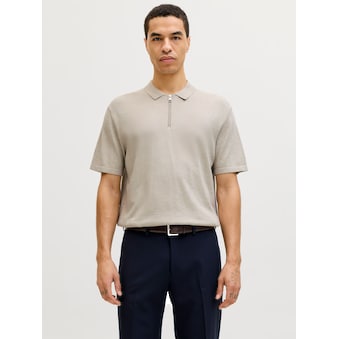 Trendiger Herren-Polokragenpullover der Marke Jack & Jones. Die Ärmel sind kurz. Außerdem hat der Pullover mit einer kurzen Knopfleiste. Das Oberteil aus dehnbarem Strick passt sich der Körperform an und macht jede Bewegung mit.