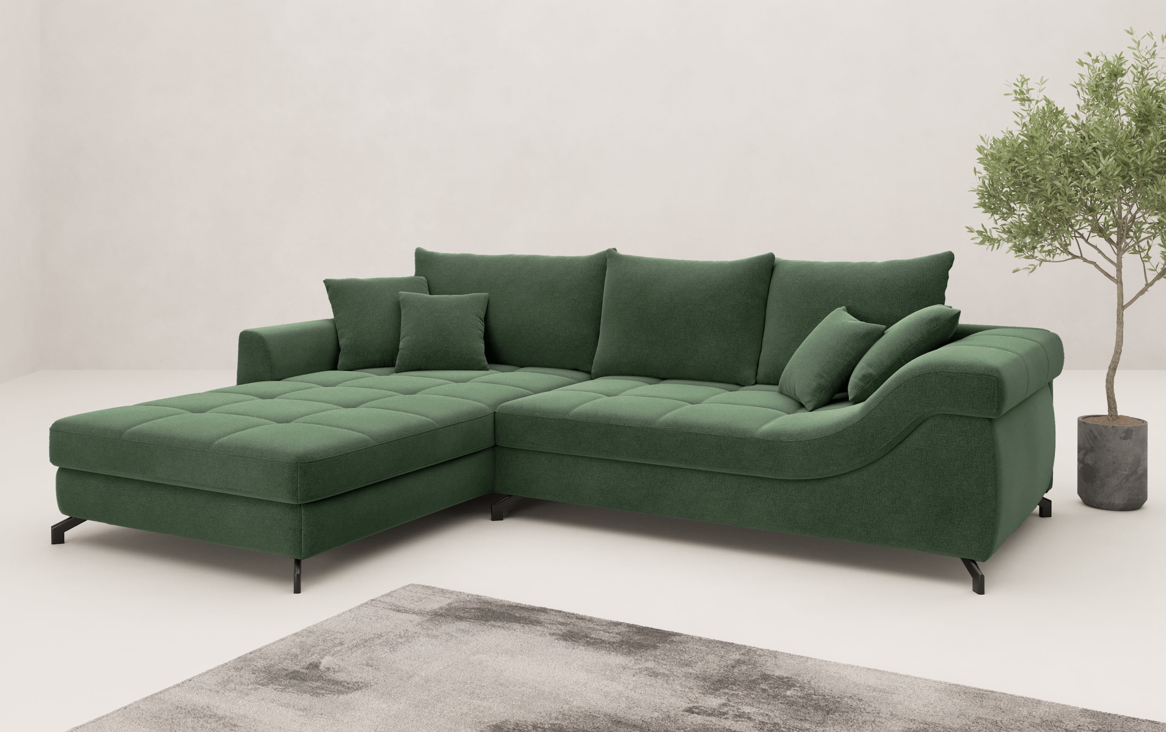 Lieferumfang | Ecksofa;3 Rückenkissen;2 Zierkissen;2 Armlehnkissen |