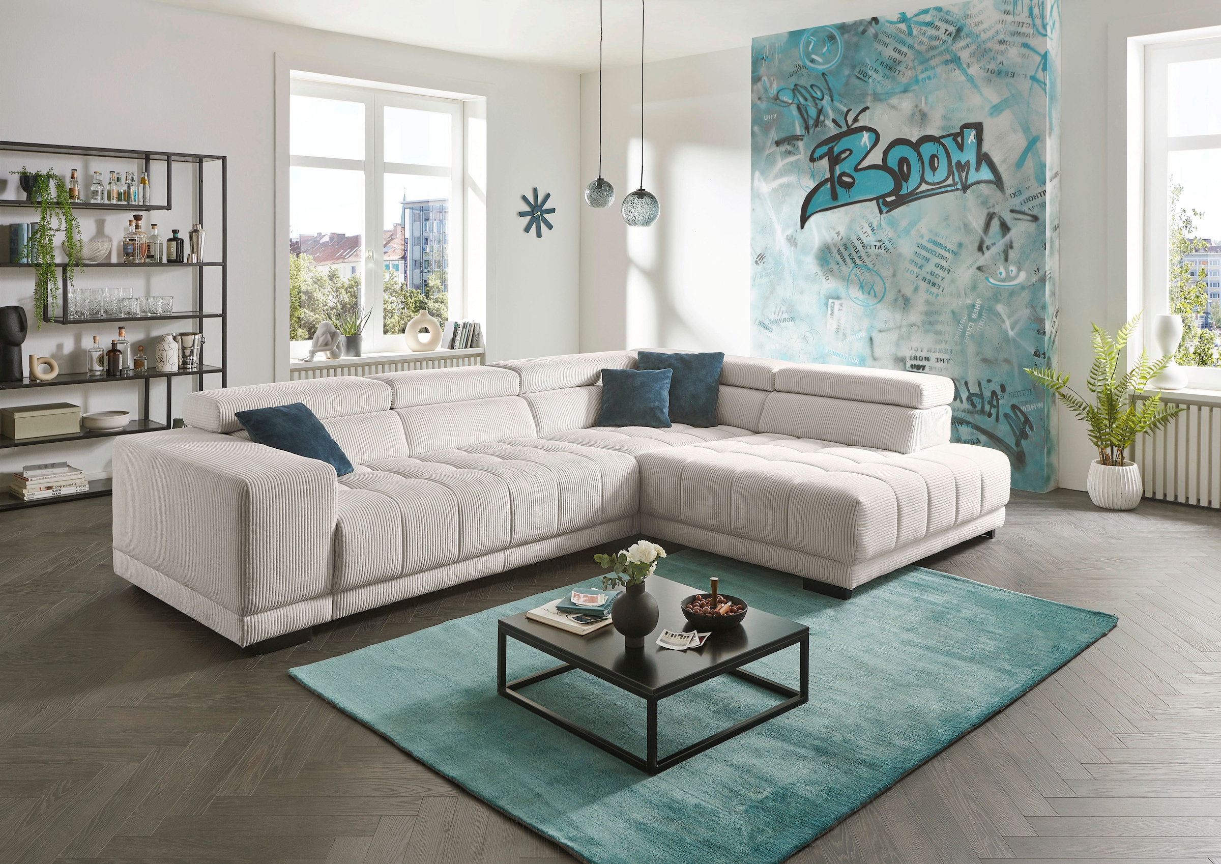 Die PlanBar Ecksofa »MP-IN15053 L-Form schmaler Schenkel« mit Kopfteilverstellung, wahlweise mit manueller Vorziehbank