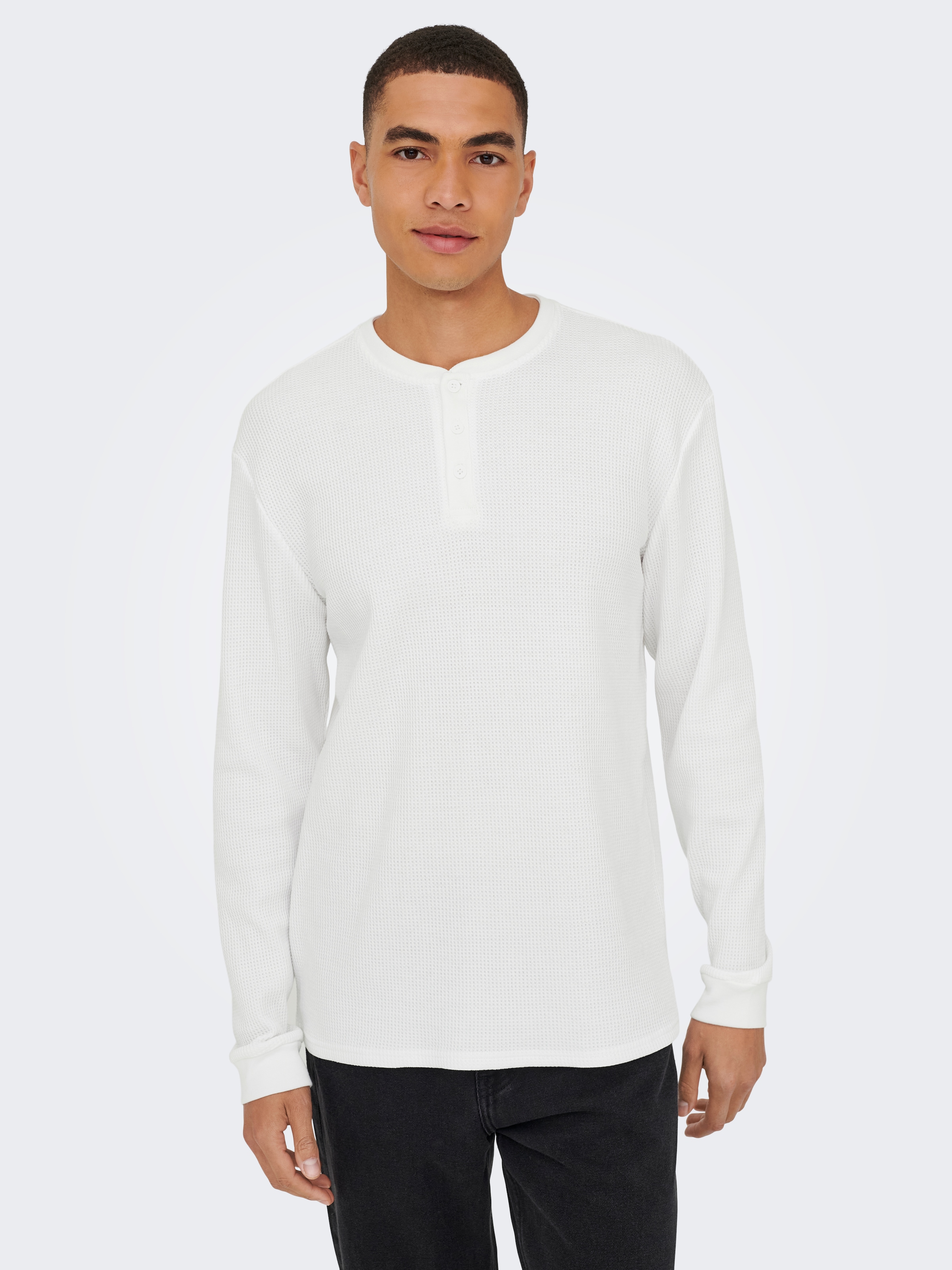 - Männer Henley Langarmshirt mit Knopfleiste am Revers