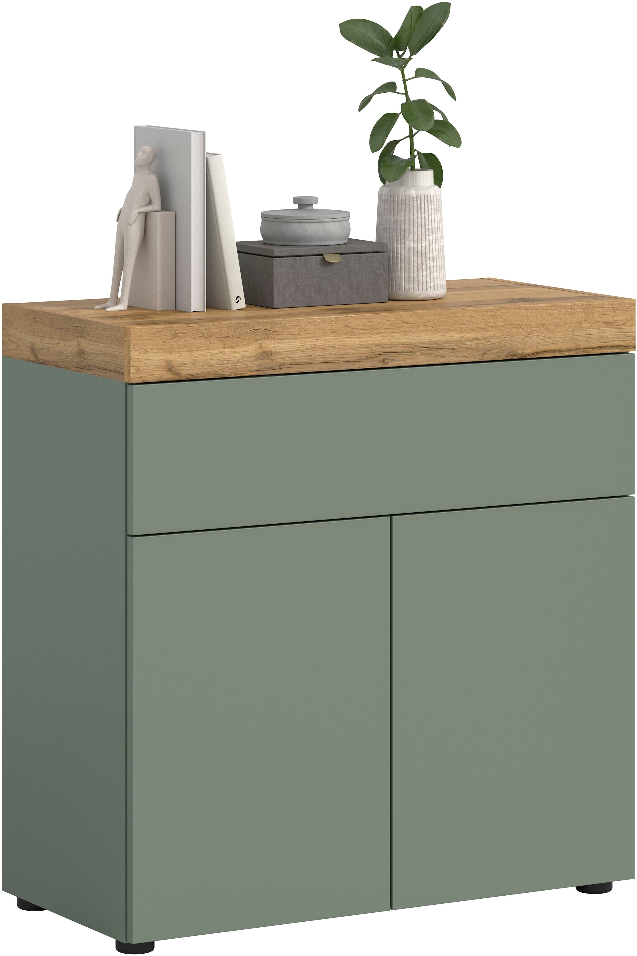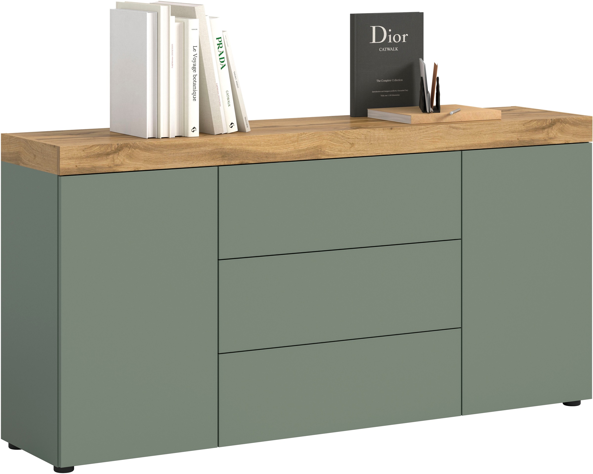 Farbbezeichnung | Smoke Green Melamin / Wotan Eiche Melamin |