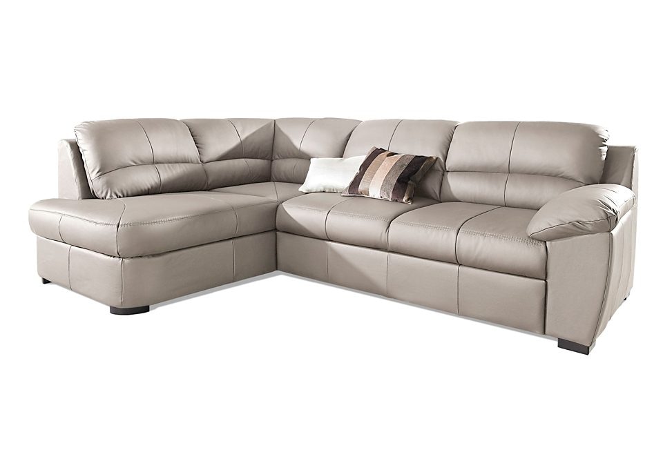 3 Bezugsqualitäten: Luxus-Microfaser aus 100% Polyester, Luxus-Kunstleder und NaturLEDER® (echtes Rindsleder, hier ist die Rückseite der Ecksofas mit Spannstoff bezogen).
