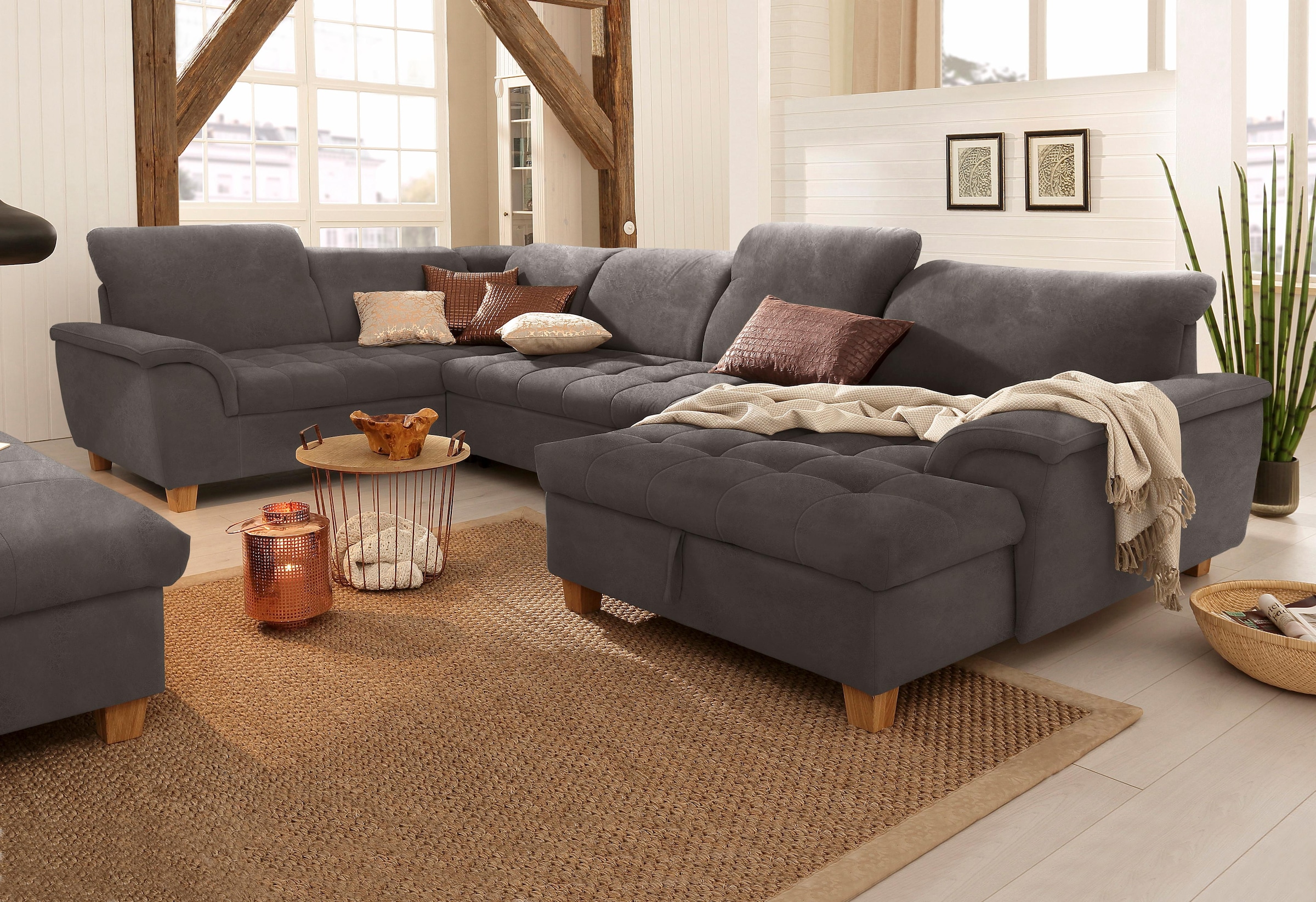 Home affaire Wohnlandschaft »Anzio, modern und gemütlich, niedrige Armlehne, U-Form« wahlweise mit Bettfunktion